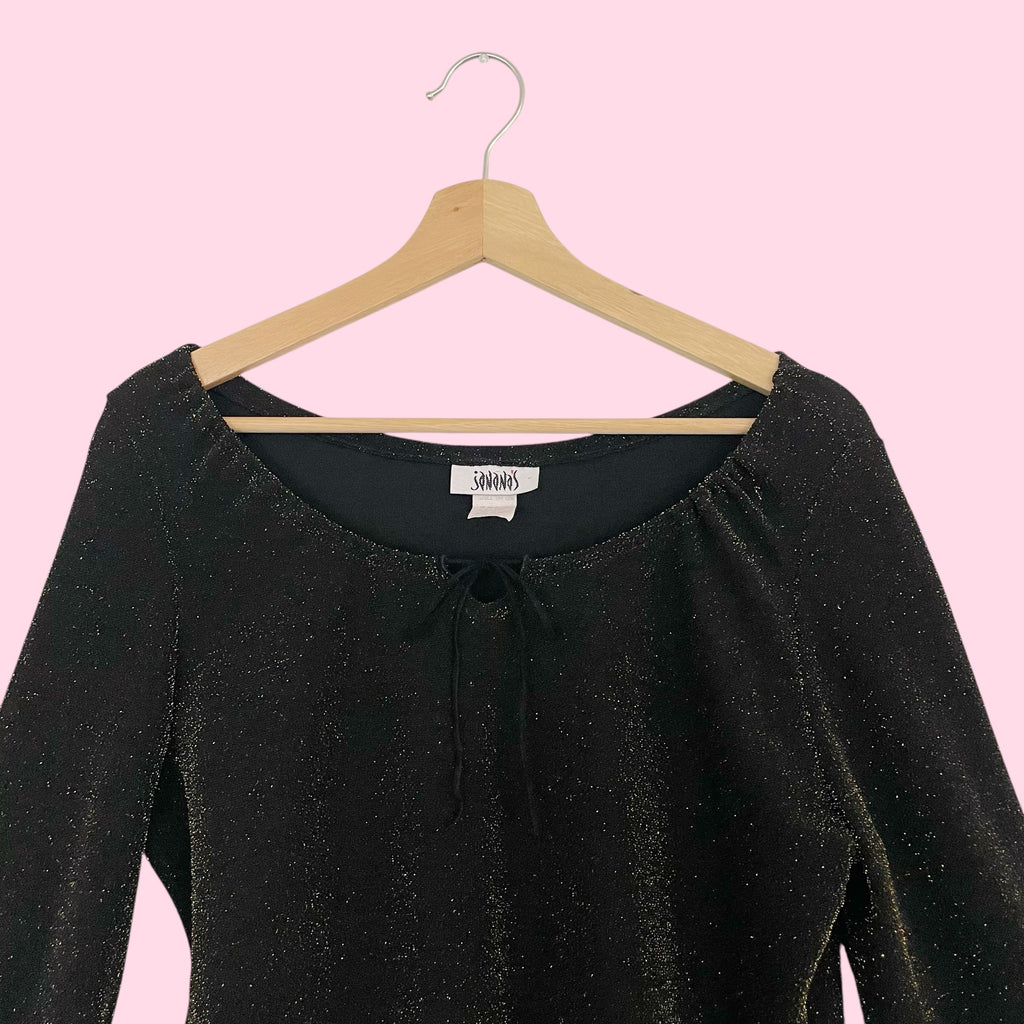 90s Black + Gold Metallic Blouse (XL)