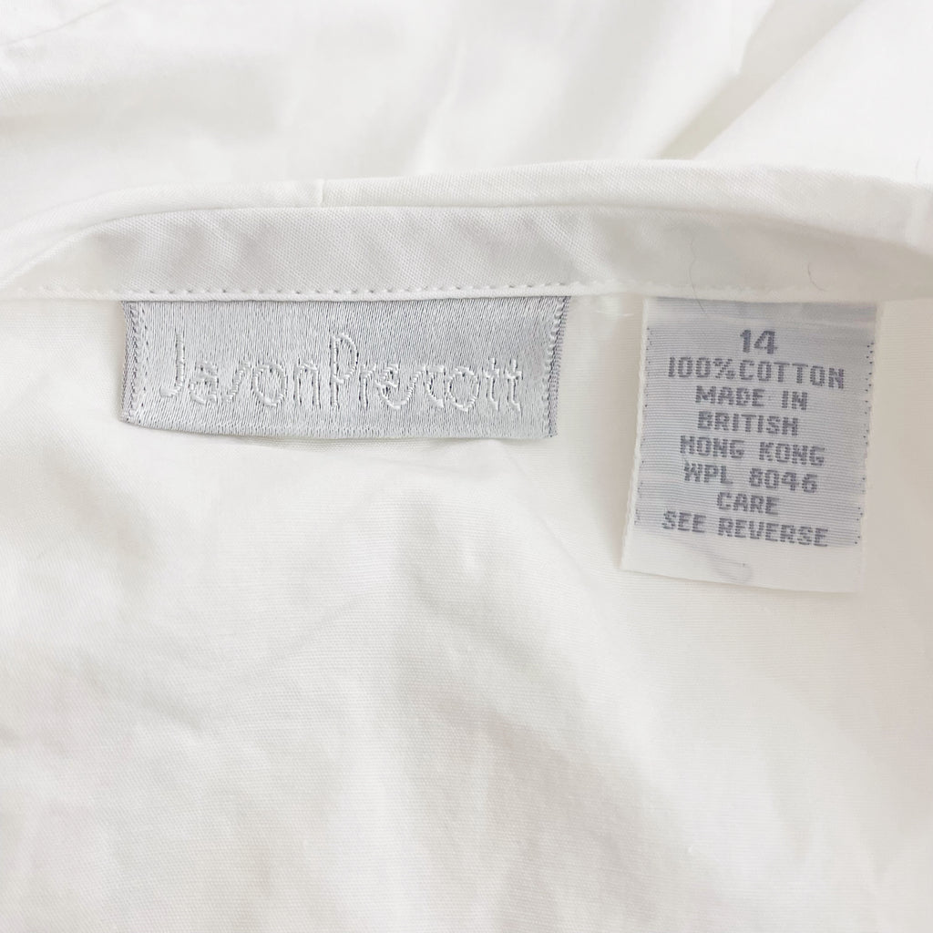 90s Cotton Blouse w/ Embroidered Collar (L)