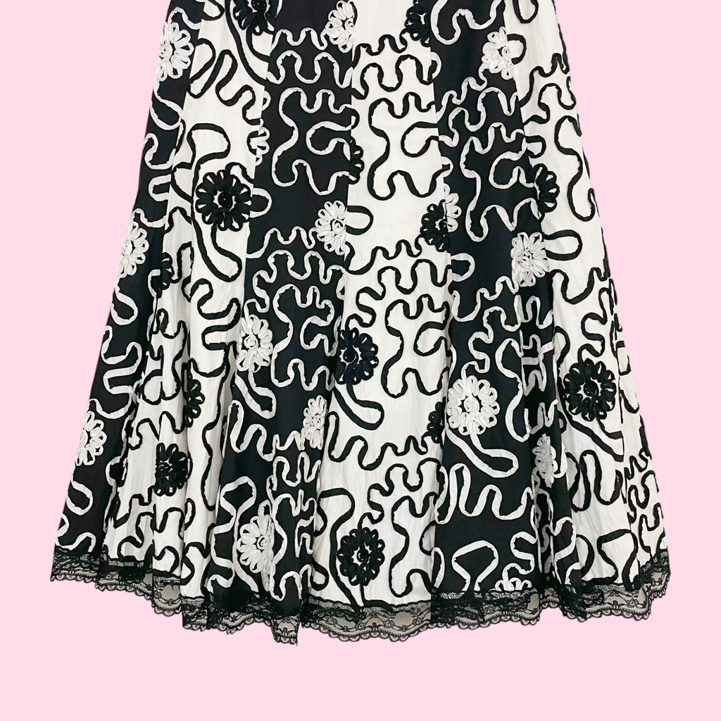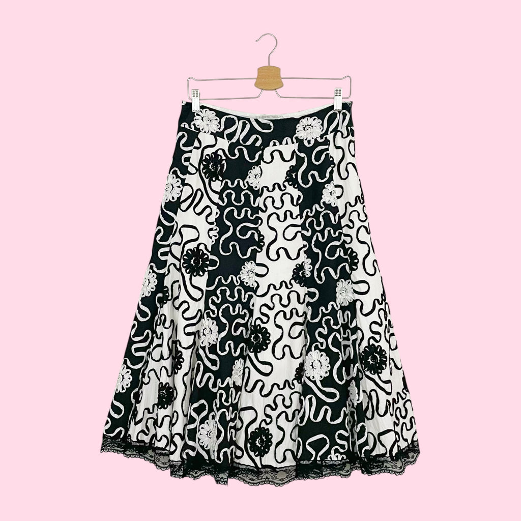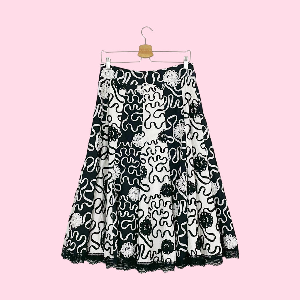 ALBERTO MAKALI BLACK + WHITE RIBBON FLORAL SKIRT (6)