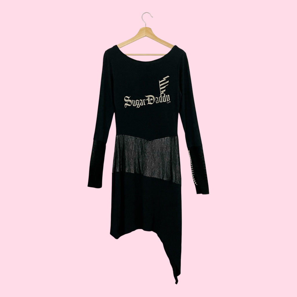 GRAPHIC ASYMMETRICAL MESH PANEL DRESS (M)
