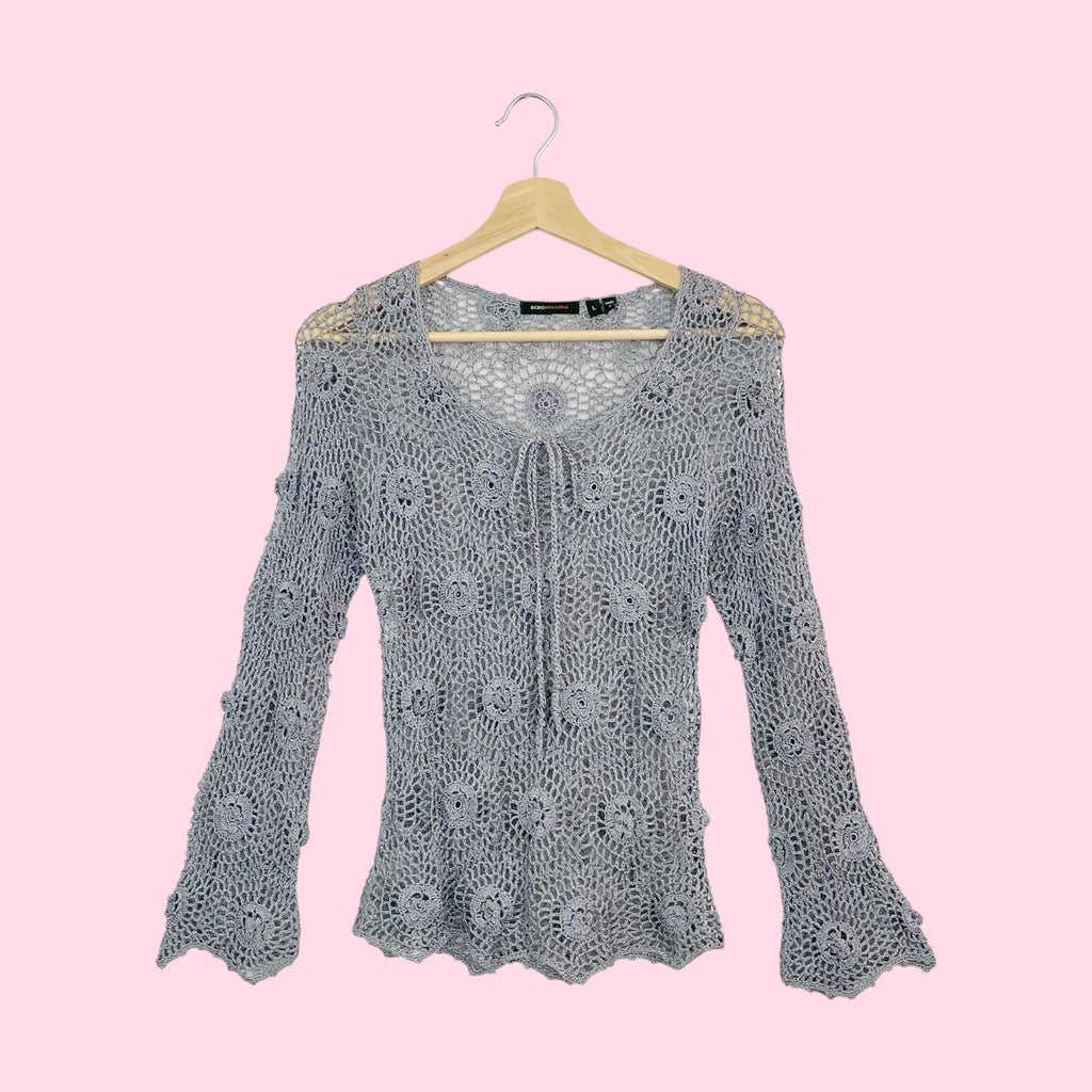 BCBG Silver Crochet Knit Top (M)