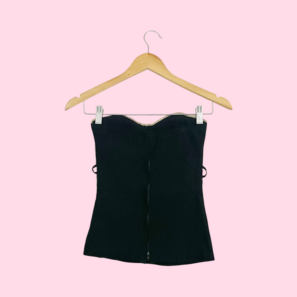 BLACK + CREAM LACE TUBE TOP (XS/S)