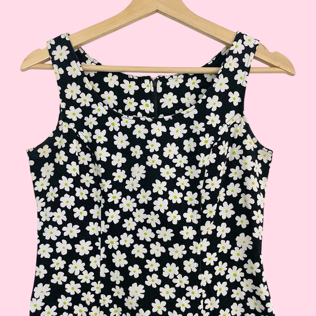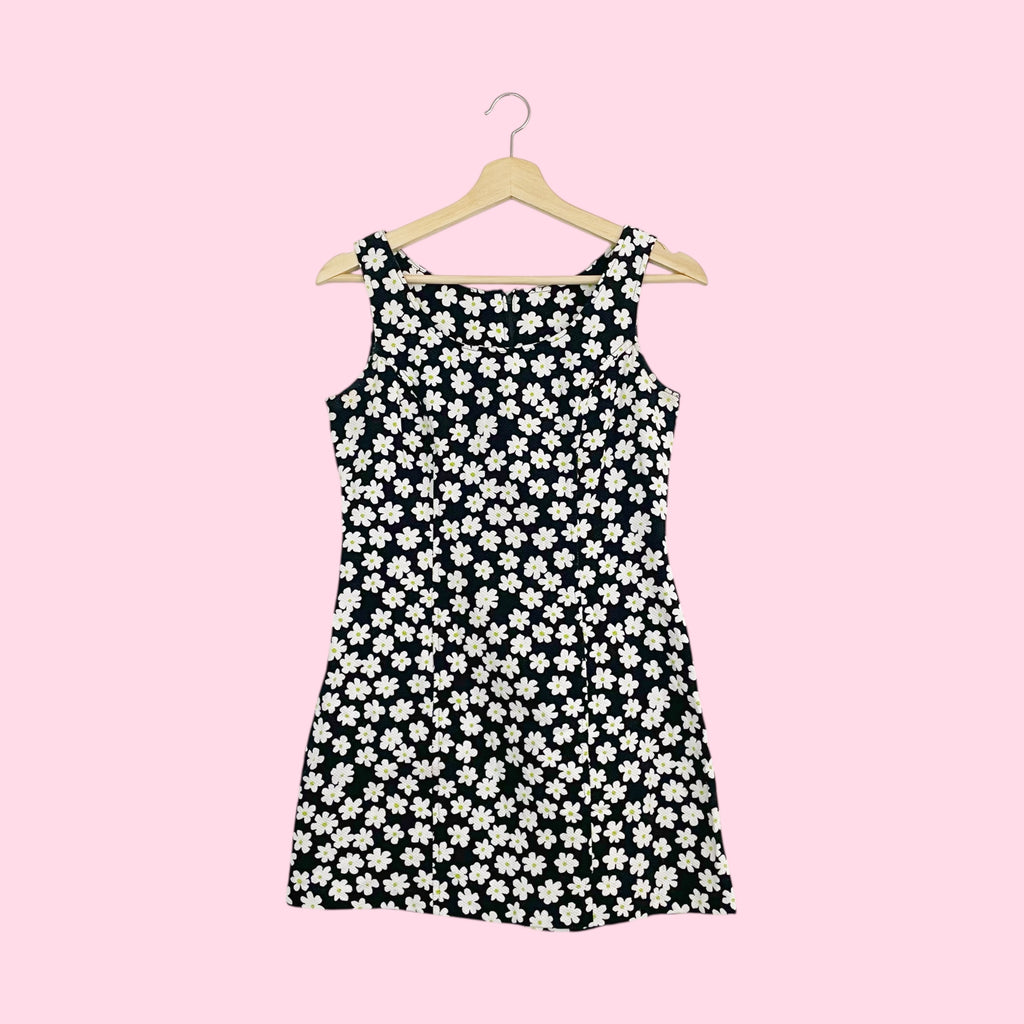 Black Daisy Print Mini Dress (S)