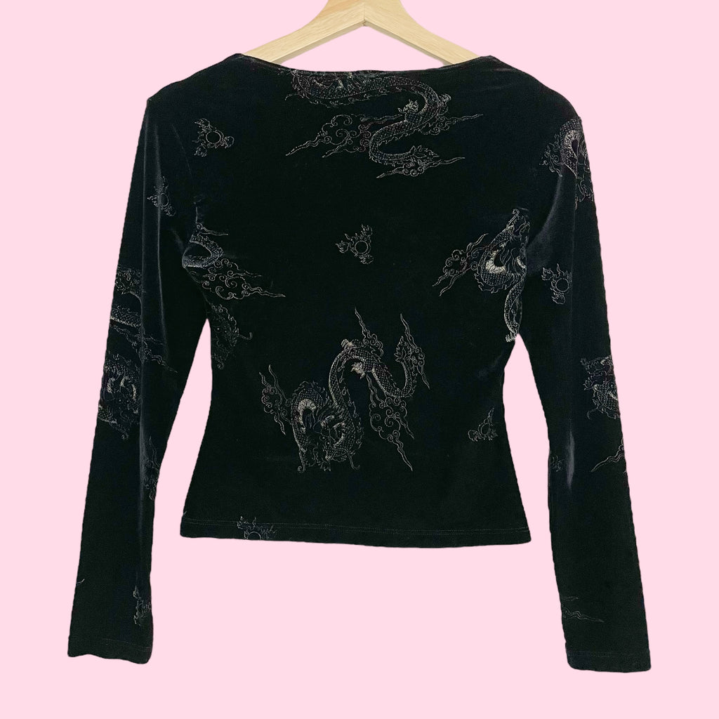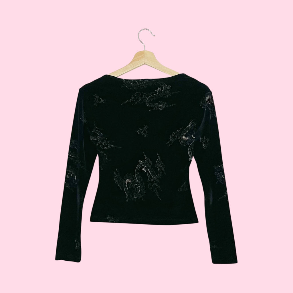 BLACK DRAGON PRINT VELVET TOP (S)