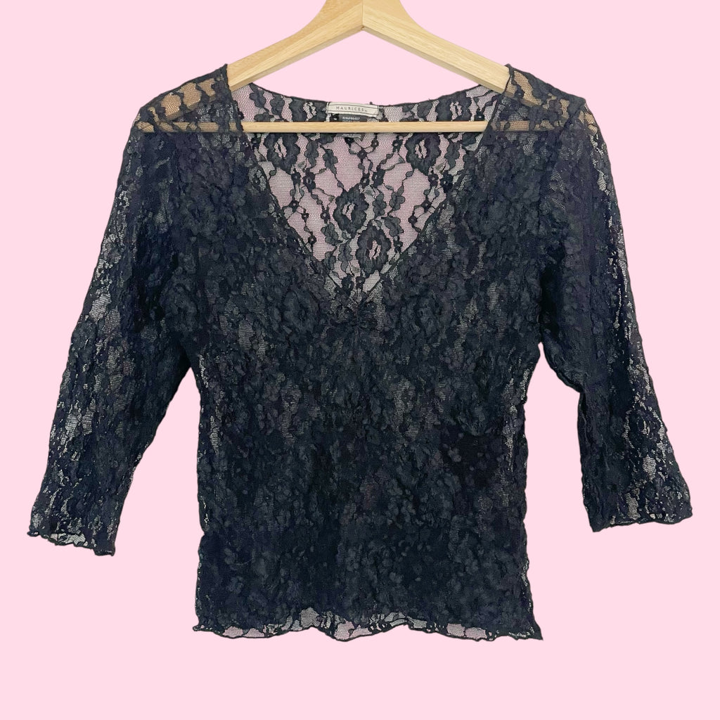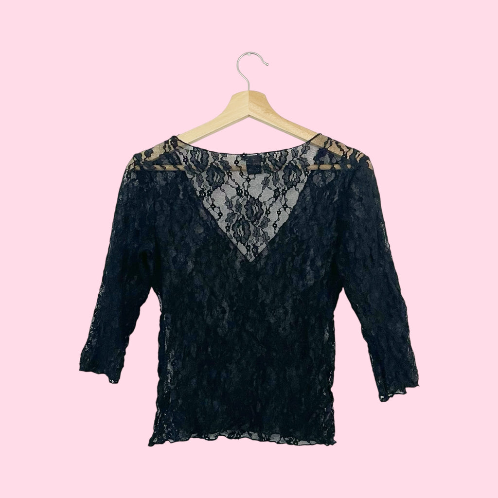 Black Lace 3/4 Sleeve Top (S/M)
