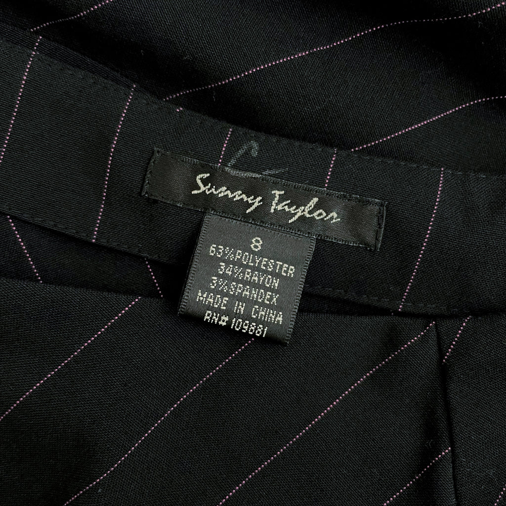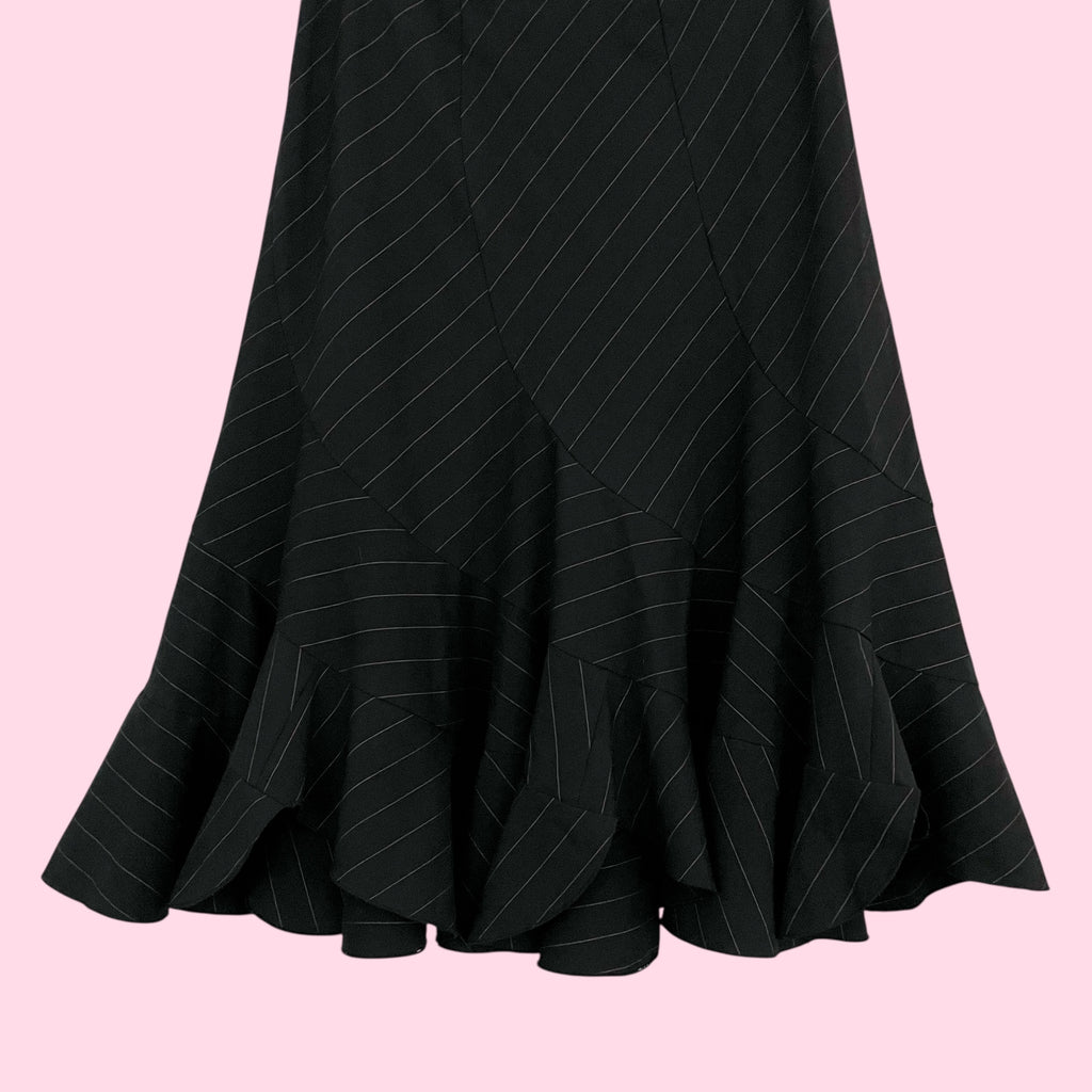 BLACK + PINK PINSTRIPE PANELED MIDI SKIRT (8)
