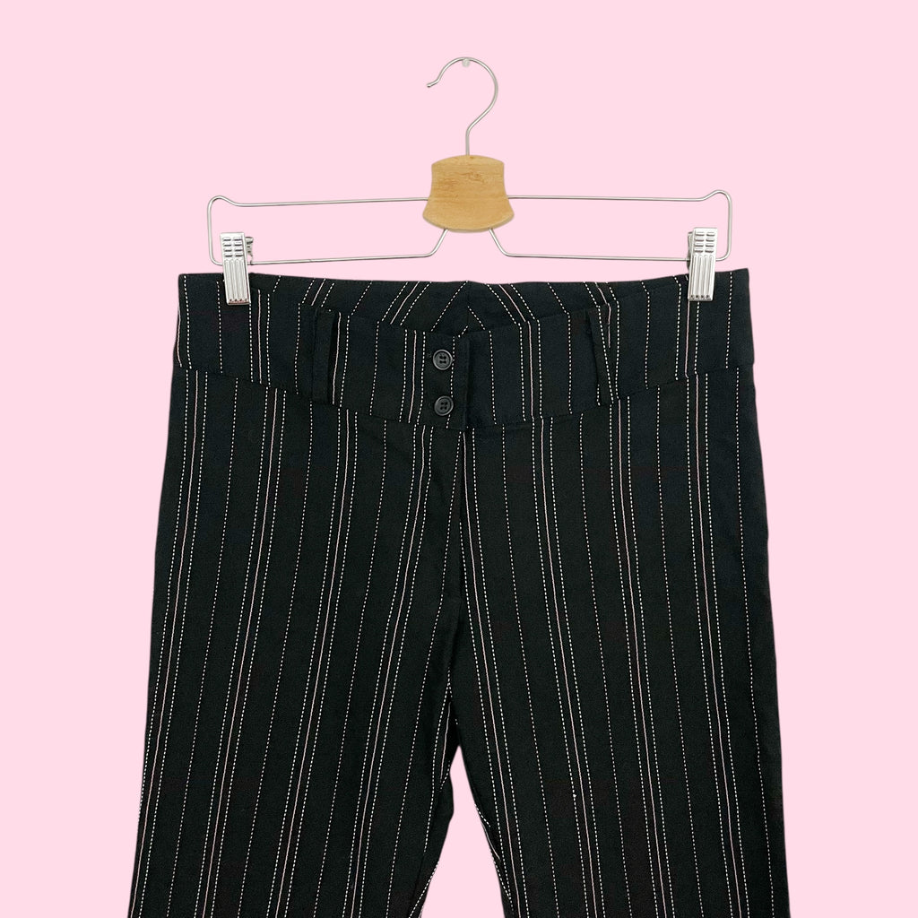 BLACK + PINK PINSTRIPE STRETCH OFFICE PANTS (L)