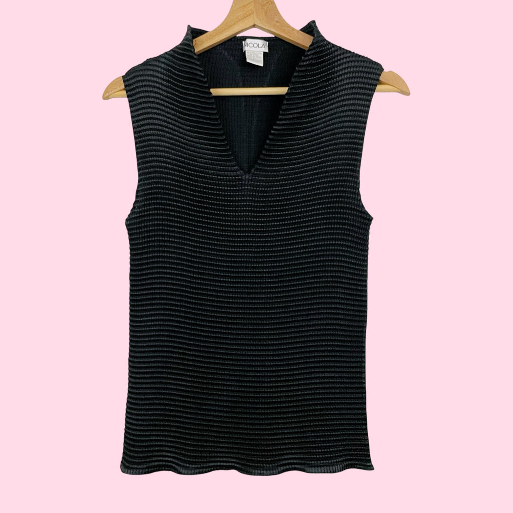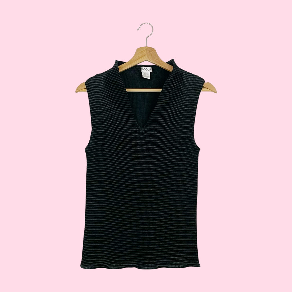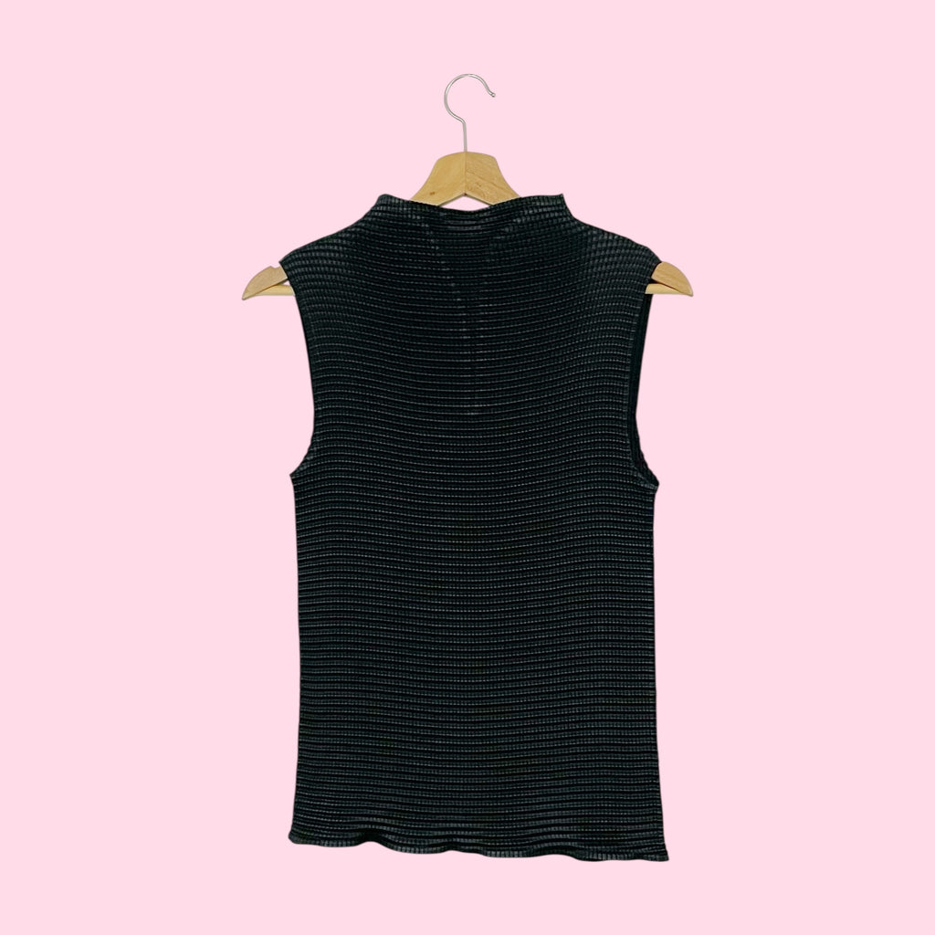 BLACK PLEATED HIGH NECK TOP (L)