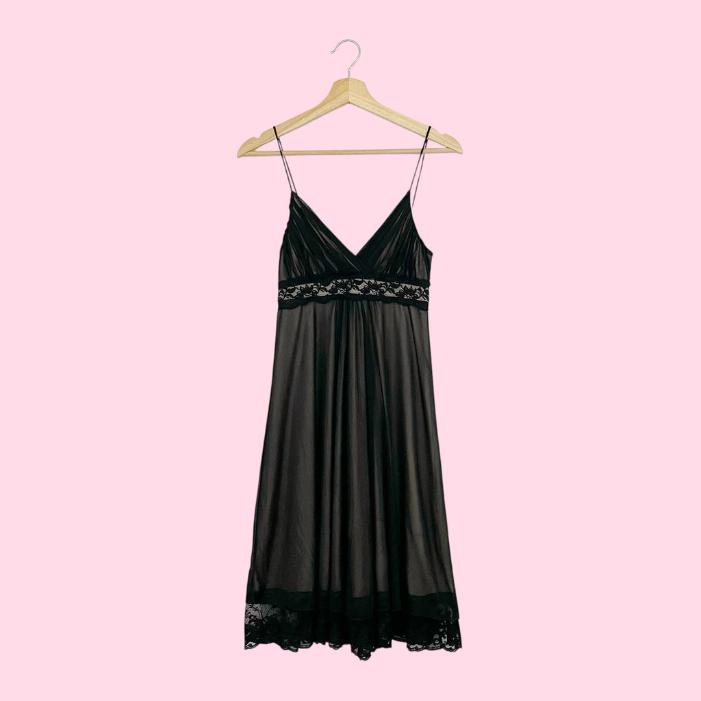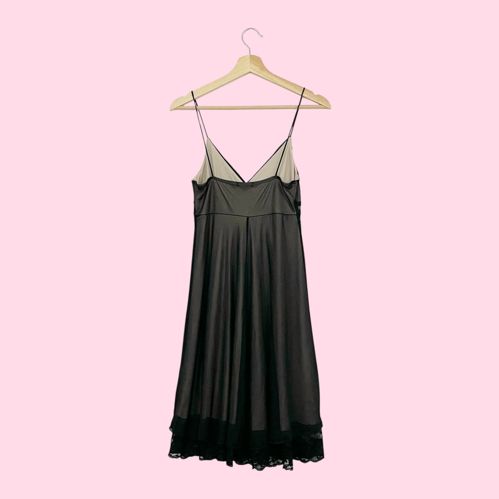 BLACK + TAN MESH LACE TRIM MIDI DRESS (S)