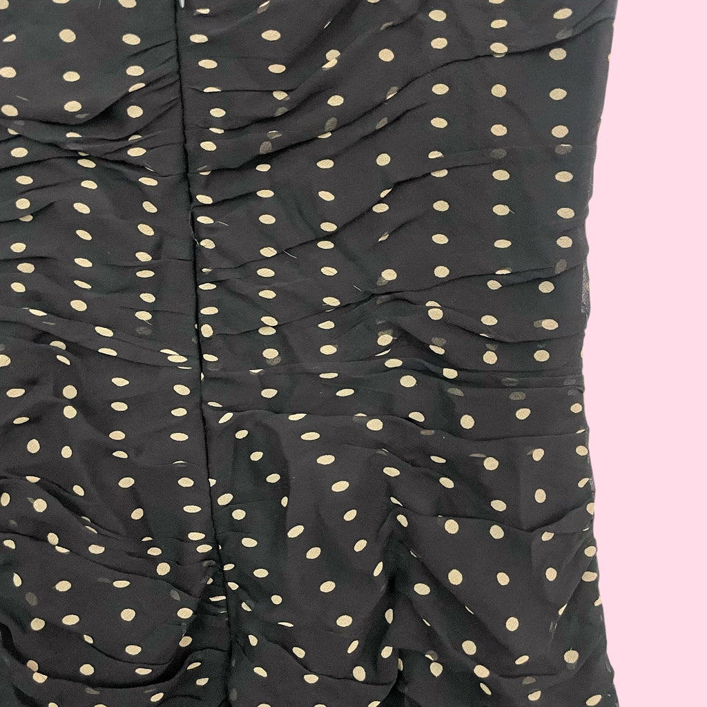 BLACK + TAN RUCHED SILK MIDI DRESS (2)