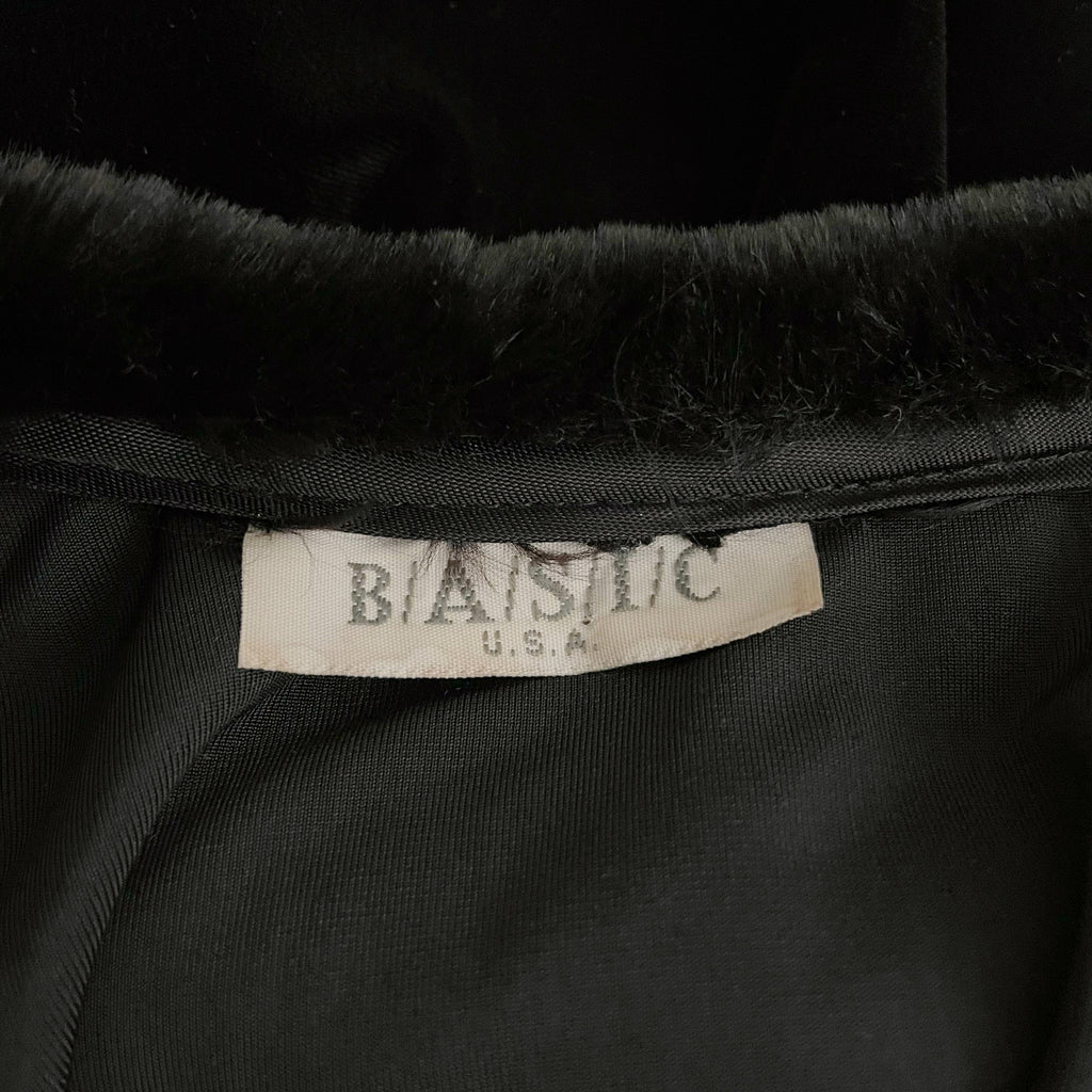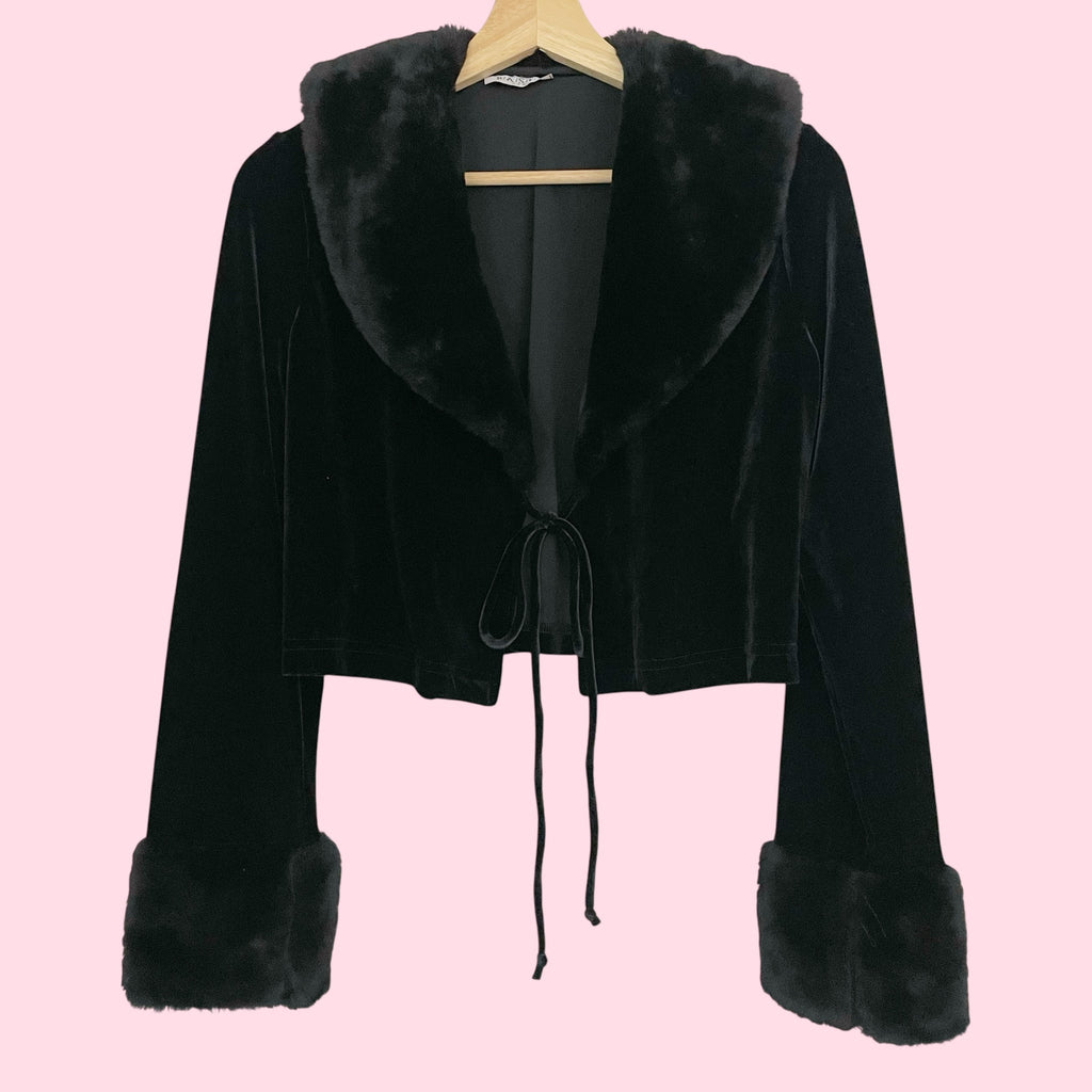 Black Velvet Tie Front Cardigan w/ Faux Fur Trim (L/XL)
