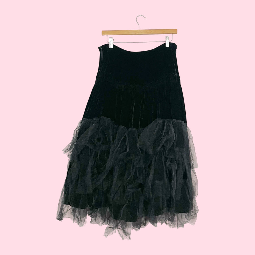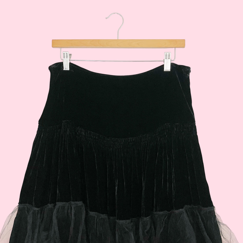 Black Velvet Tiered Midi Skirt w/ Tulle (30)