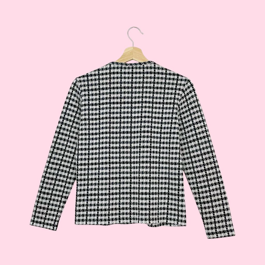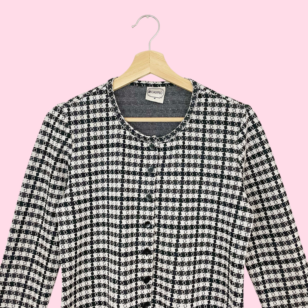 BLACK + WHITE PATTERNED KNIT CARDIGAN TOP (M)