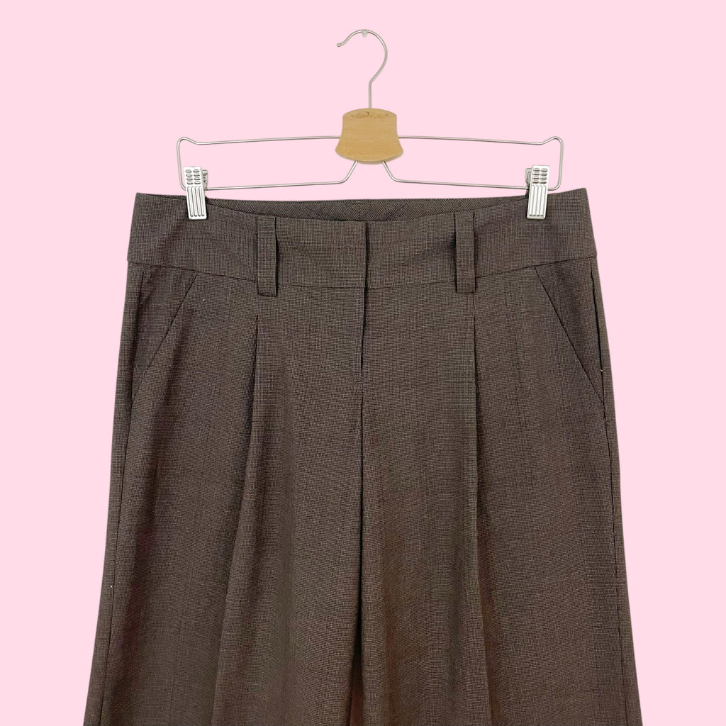 BROWN PLAID PLEATED LOW RISE WIDE LEG PANTS (8)