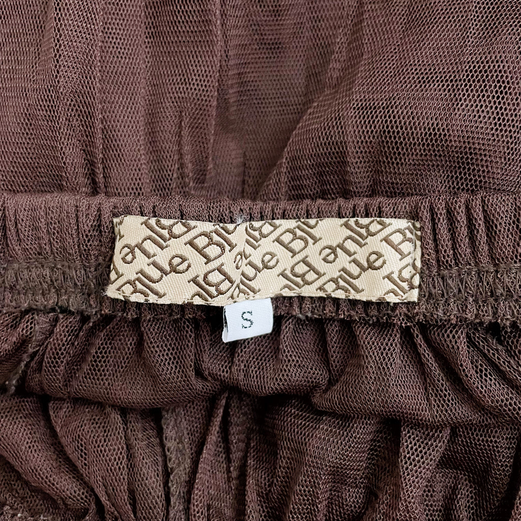 BROWN WRINKLED MESH SHEER SKIRT (S)