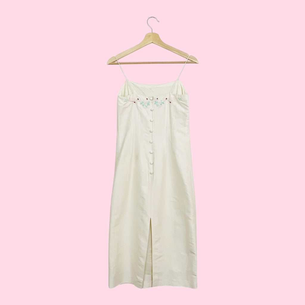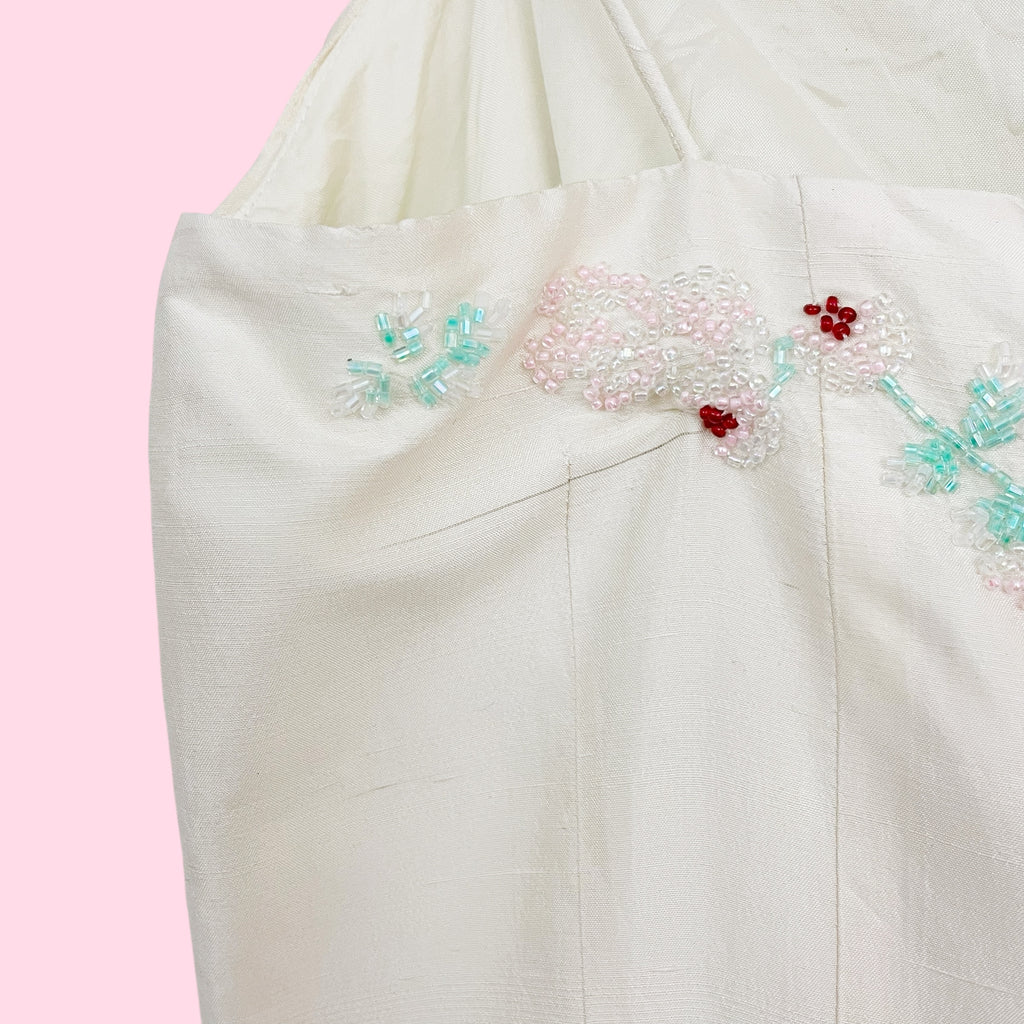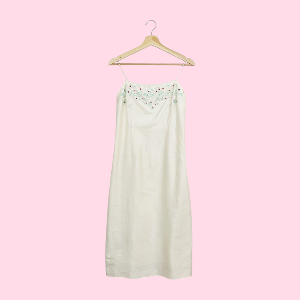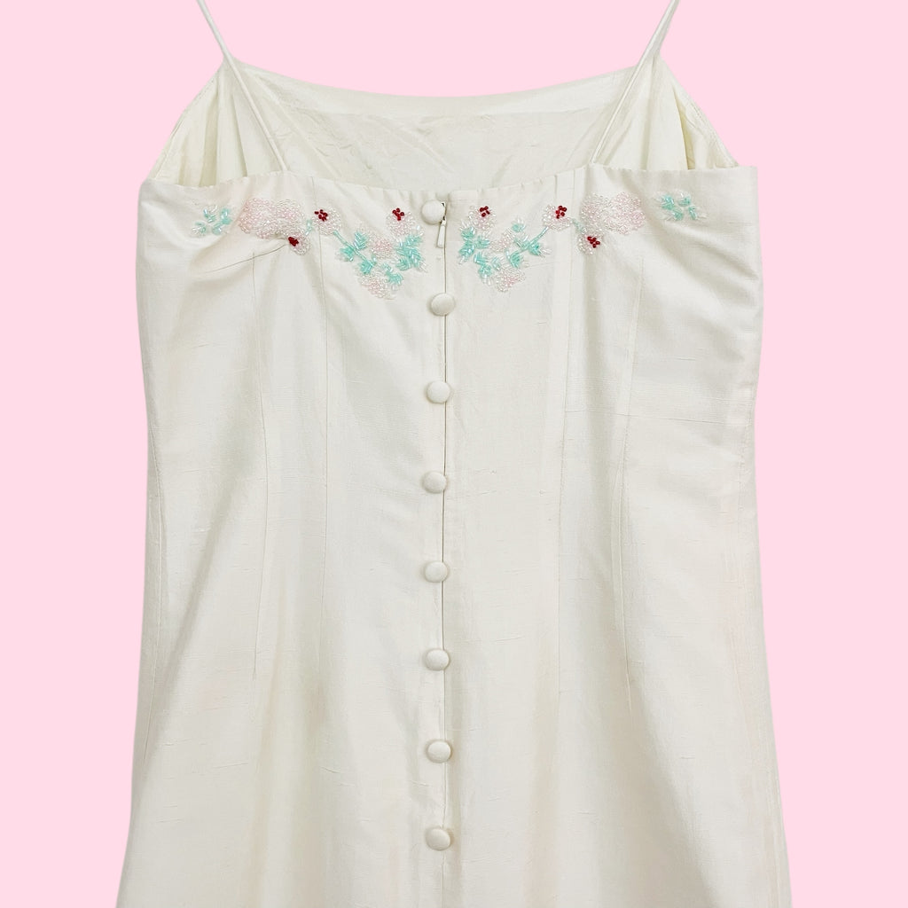 CREAM RAW SILK BEADED MIDI DRESS (2)