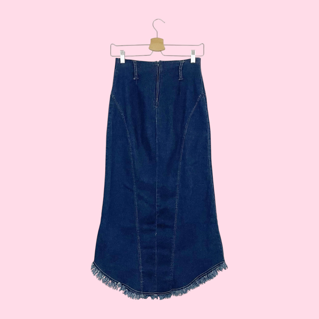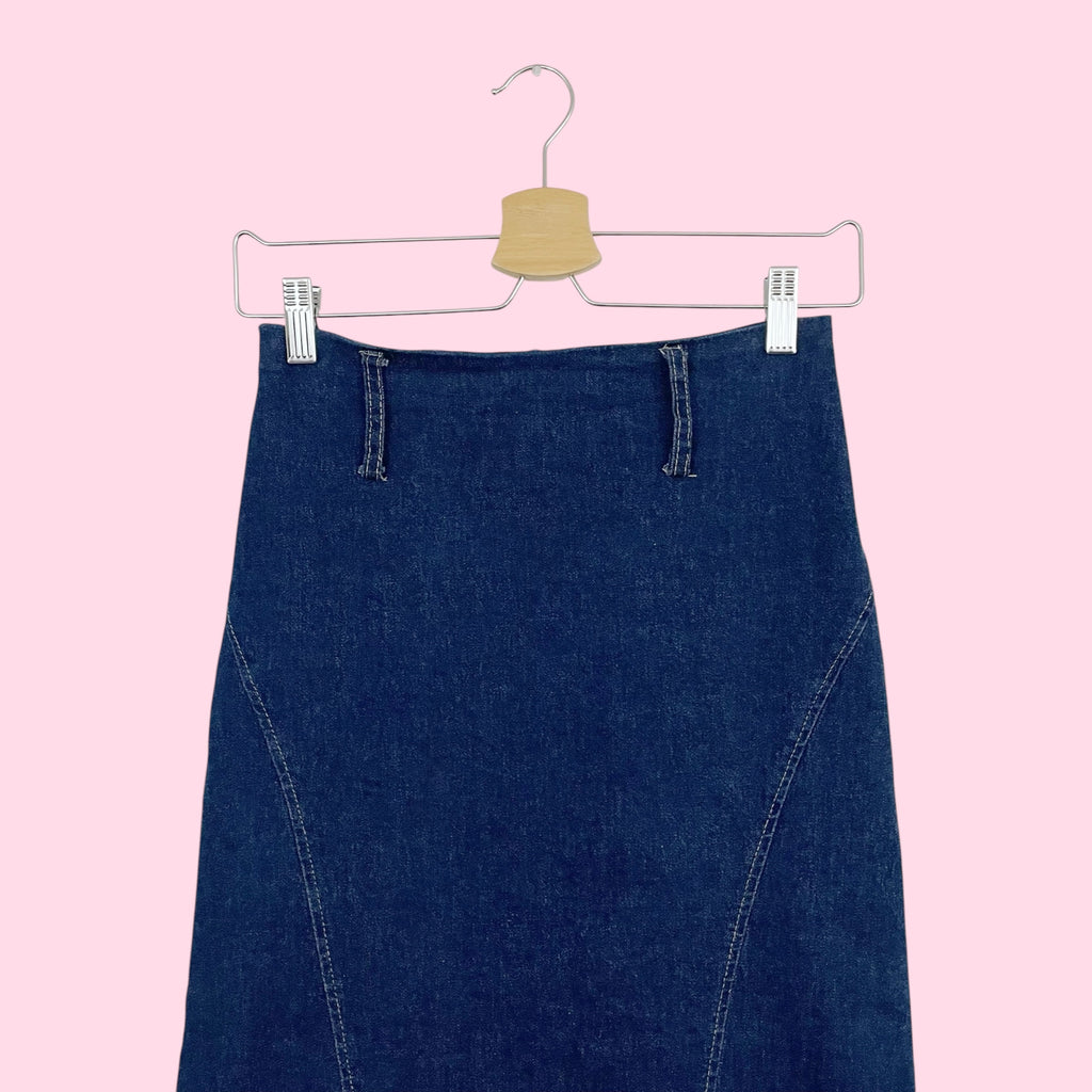 DARK STRETCH DENIM MAXI SKIRT (S)