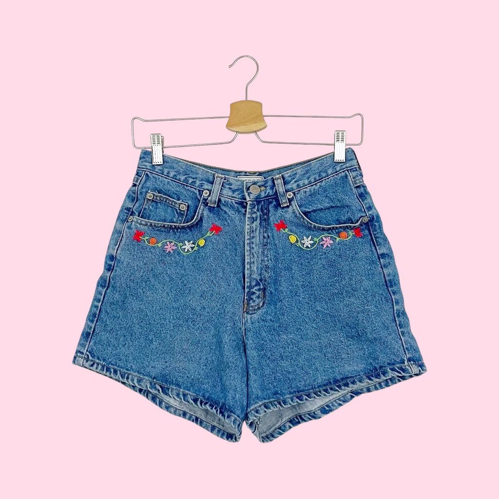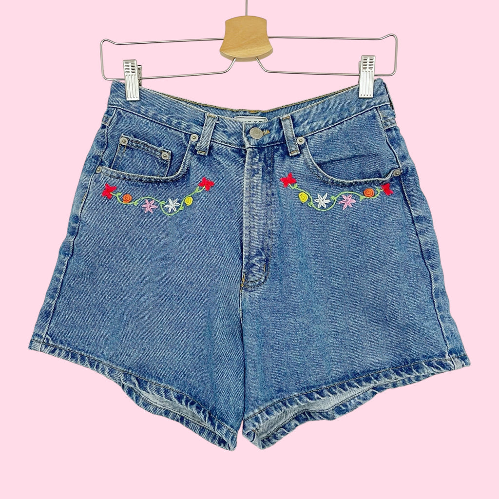 FLORAL EMBROIDERED DENIM SHORTS (27)