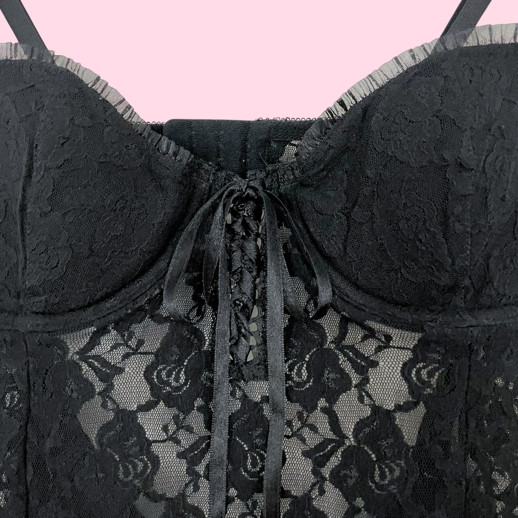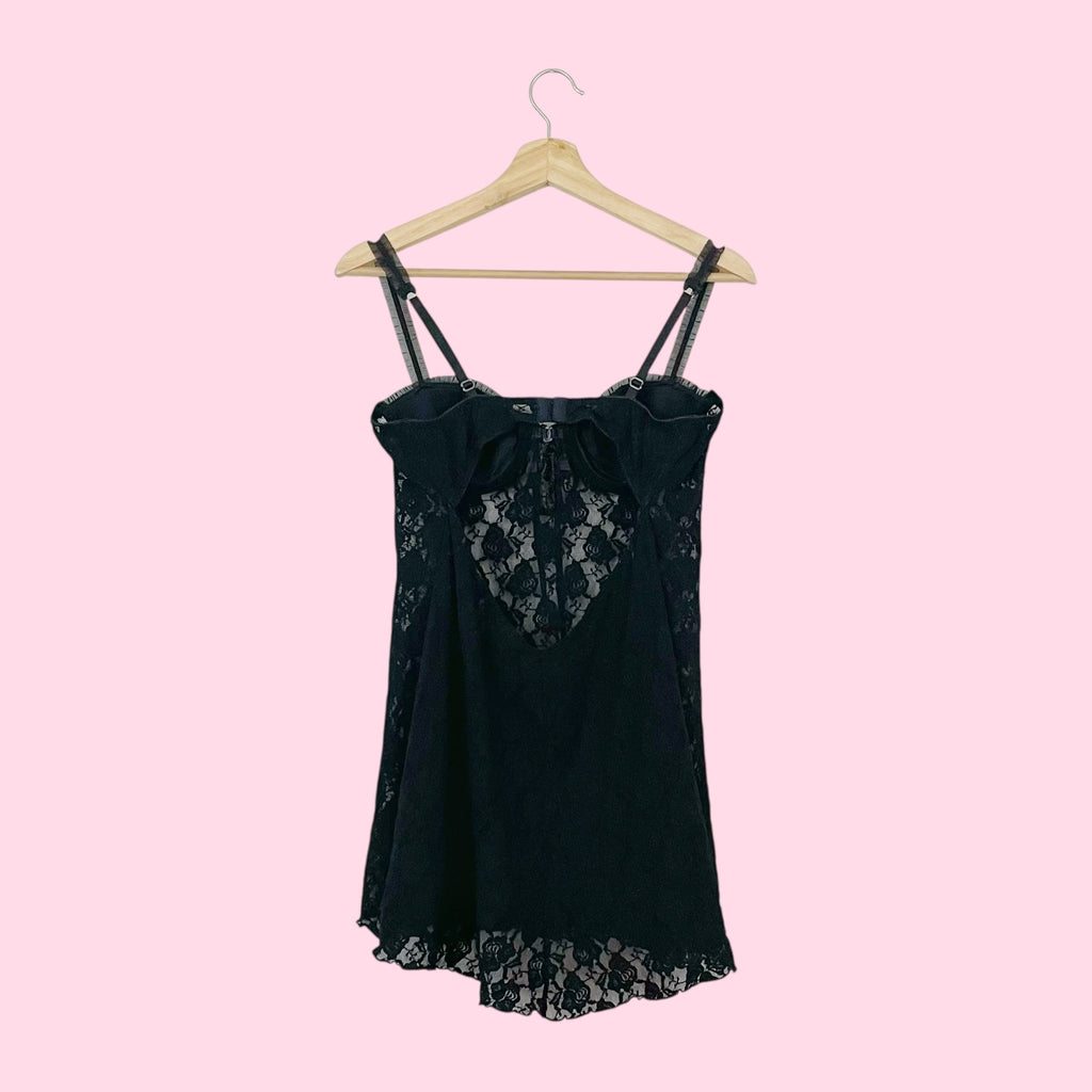 FREDERICK'S BLACK LACE BABYDOLL (M/L)