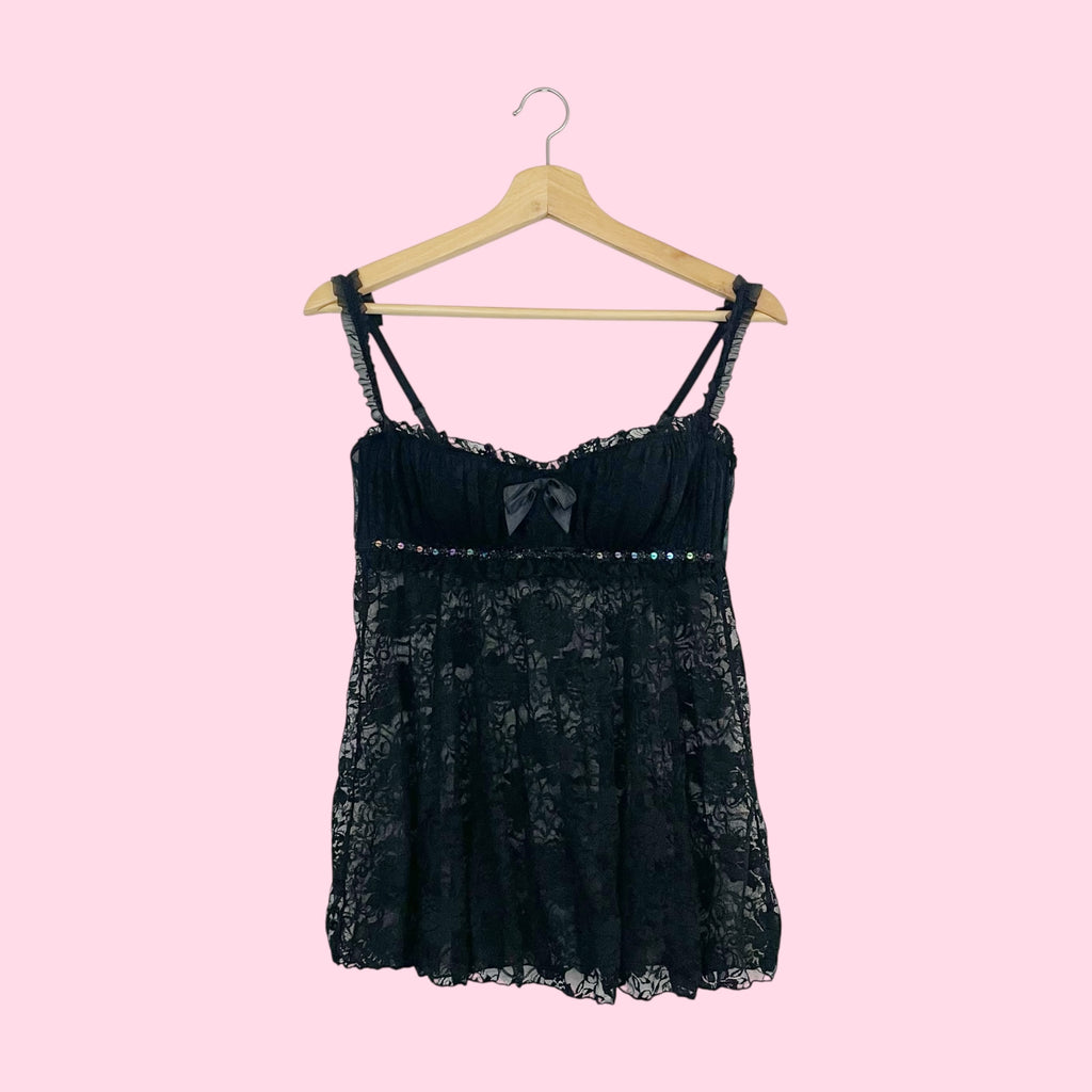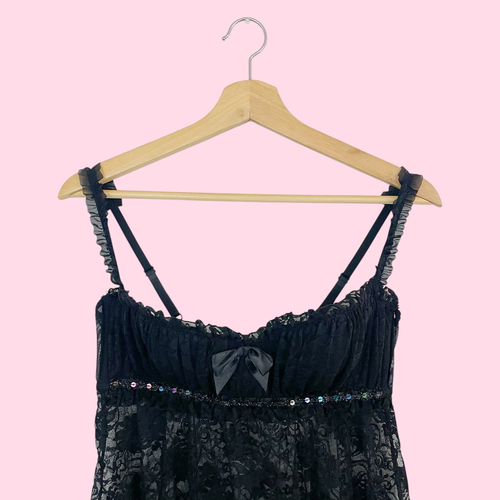 Frederick's Black Lace Babydoll w/ Sequins (L)