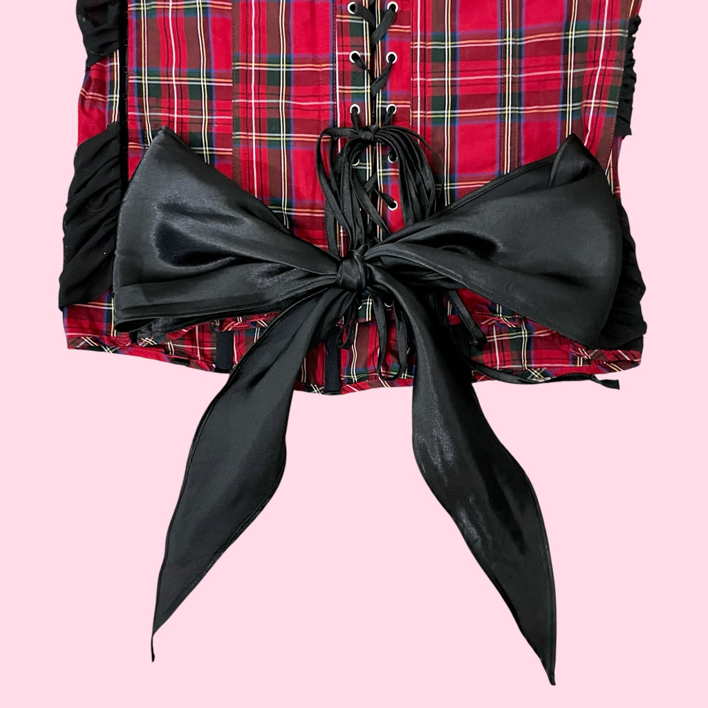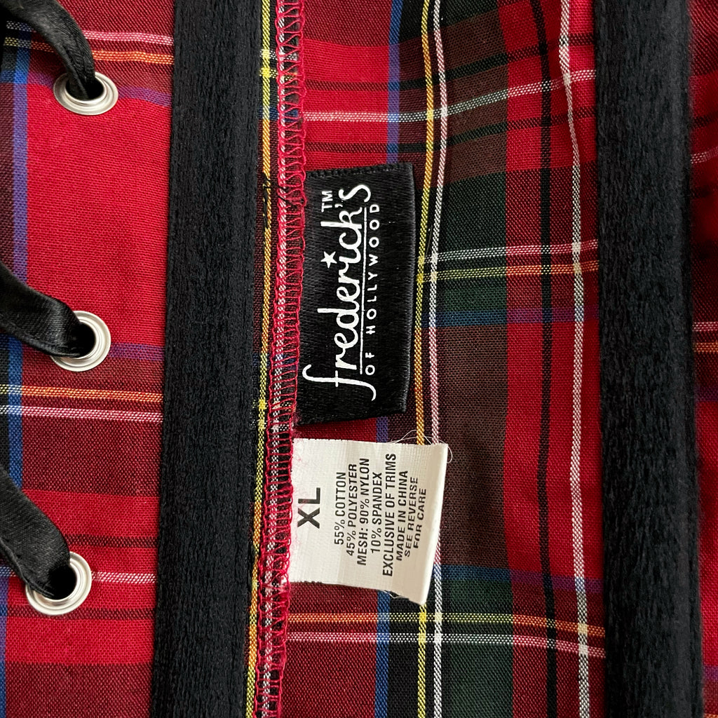 FREDERICK'S RED TARTAN PLAID CORSET W/ MESH OVERLAY (XL)