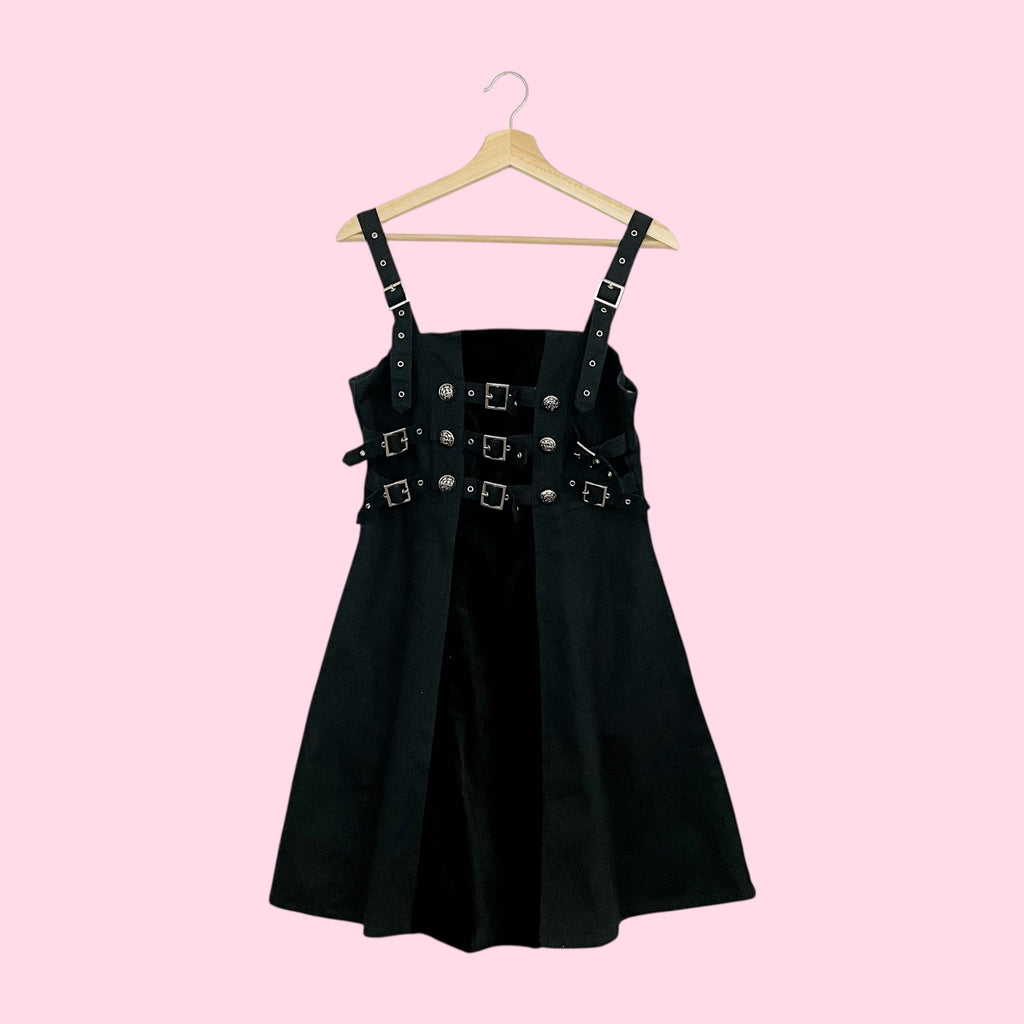 Funhouse NYC Black Goth Buckle Strap Dress W/ Velvet Panel (S)