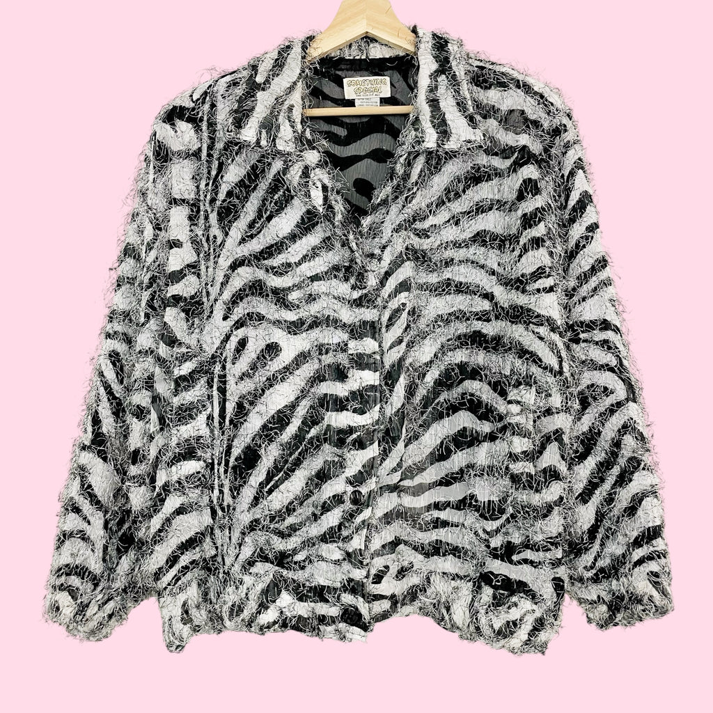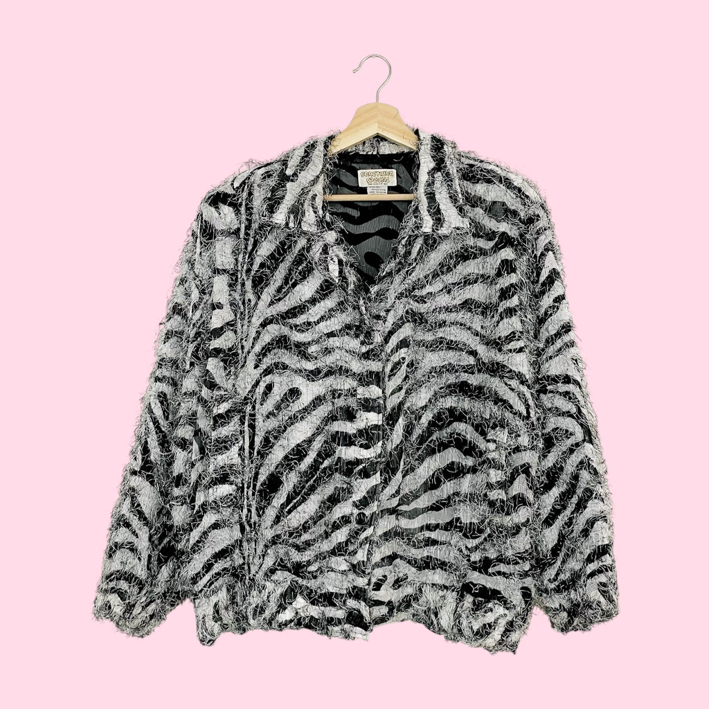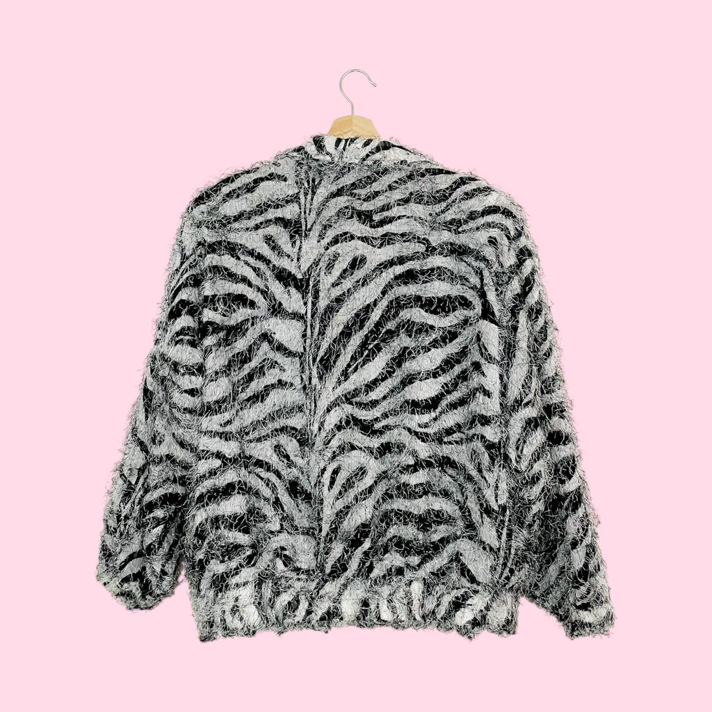 FUZZY ZEBRA BOMBER JACKET (O/S)