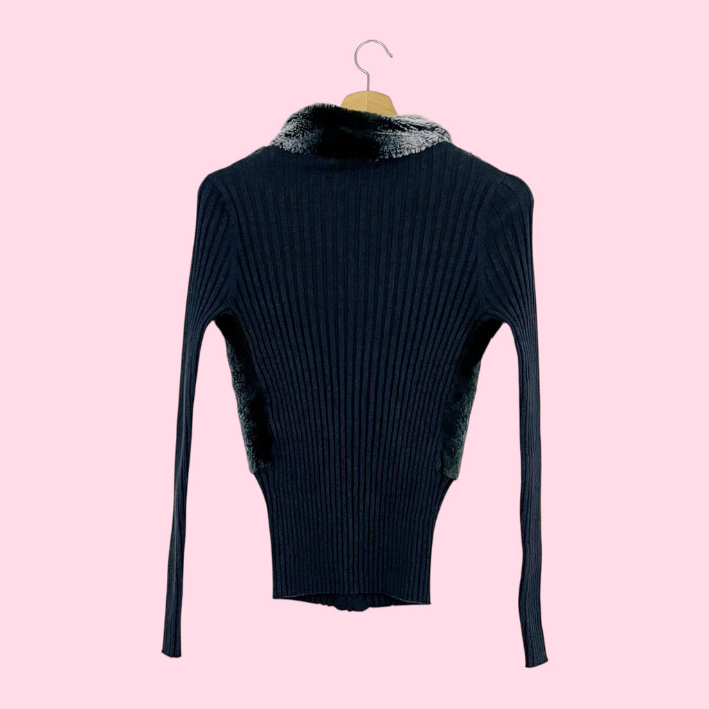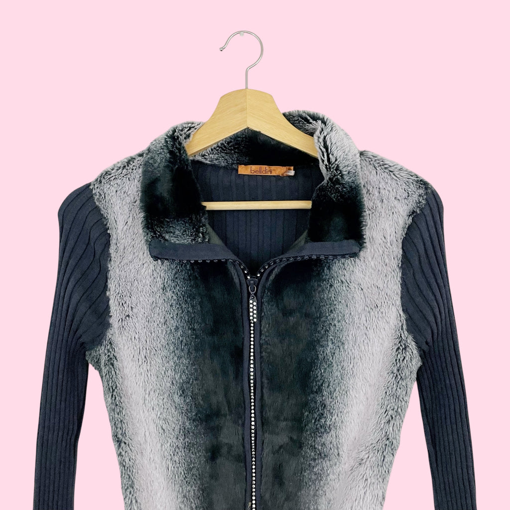 GRAY FAUX FUR ZIP UP CARDIGAN (S)