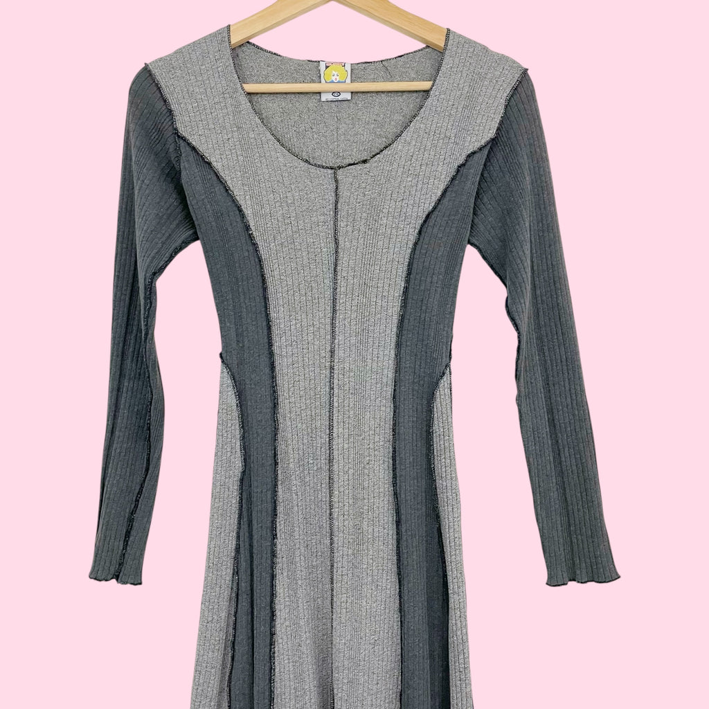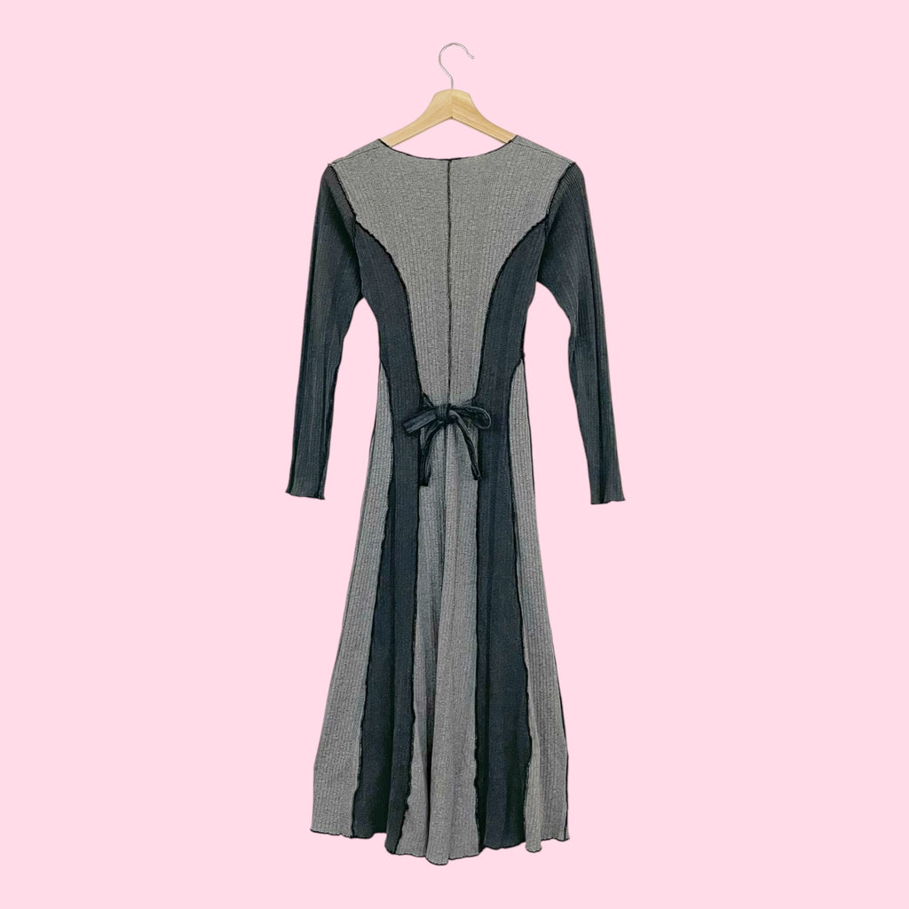 GRAY PANELED TIE BACK MIDI DRESS (S/M)