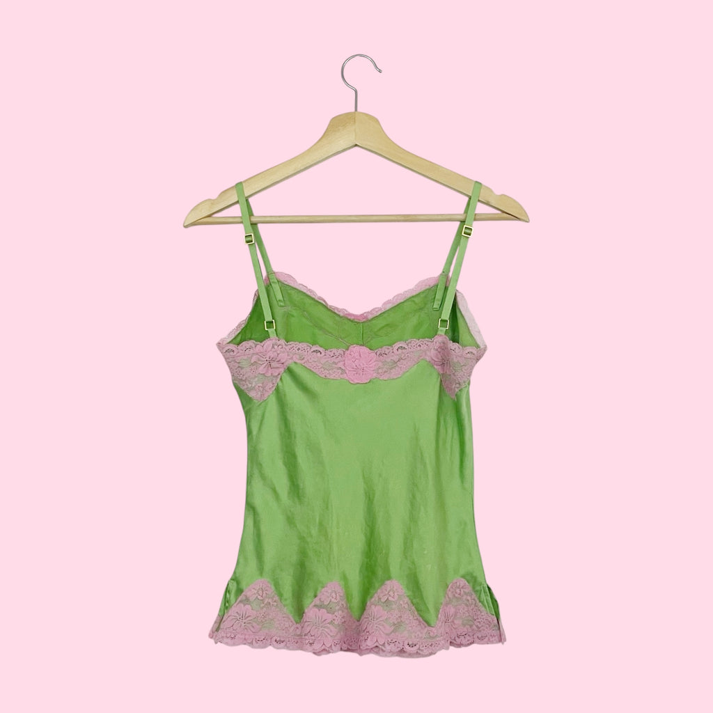 GREEN + PINK SILK LACE TRIM CAMI (XS)