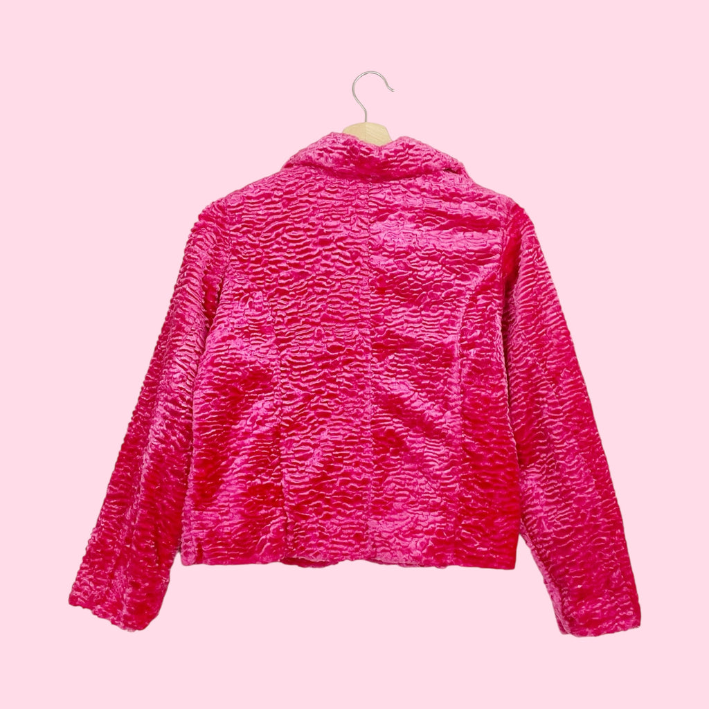 HOT PINK FAUX CURLY LAMB JACKET (S)