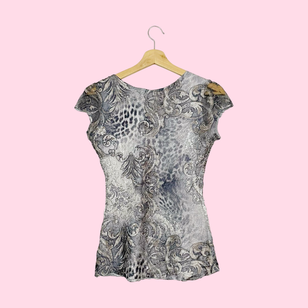 KOMAROV PAISLEY PRINT WRINKLE BLOUSE (M)