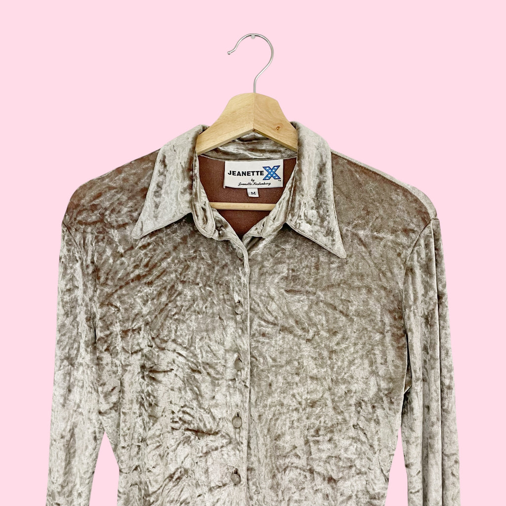 LIGHT BROWN SILK VELVET BLOUSE (M)