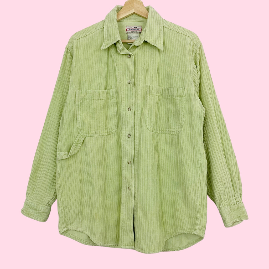 LIGHT GREEN CORDUROY OVERSIZED SHIRT (M)