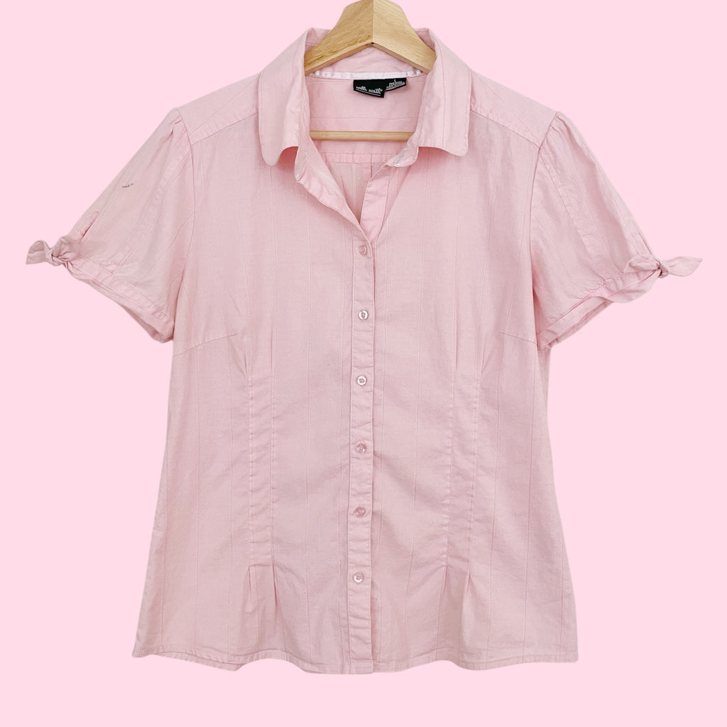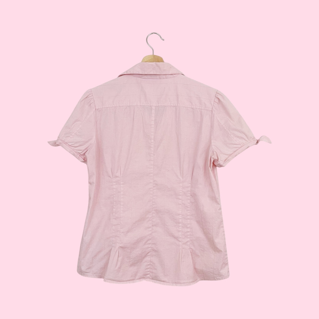 LIGHT PINK STRIPE TIE SLEEVE BLOUSE (L)