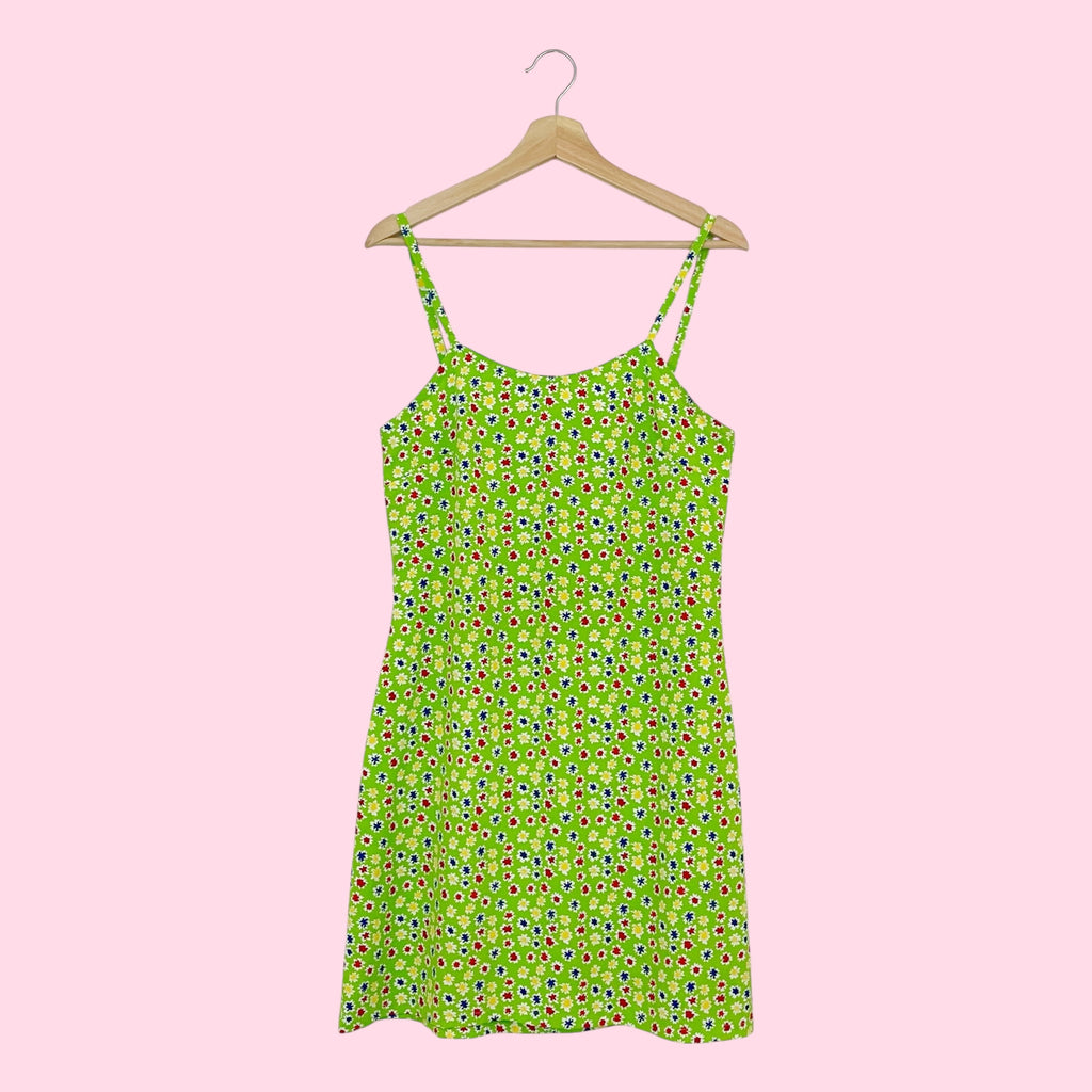 LIME FLORAL MINI DRESS (S)