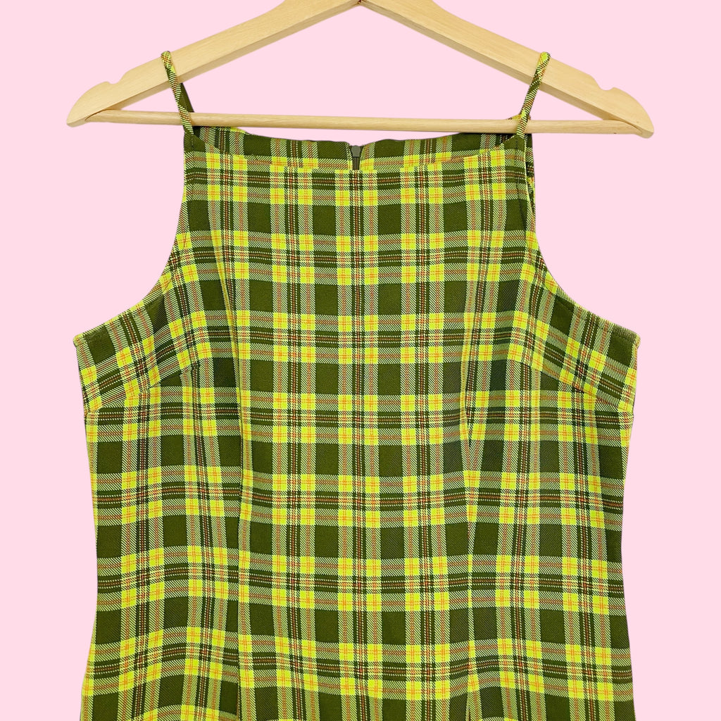 LIME GREEN PLAID DRESS (M)