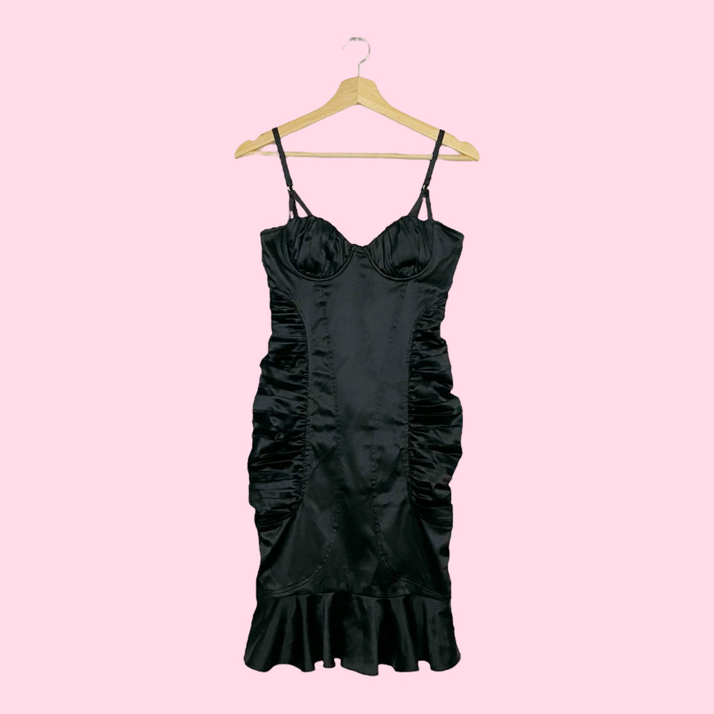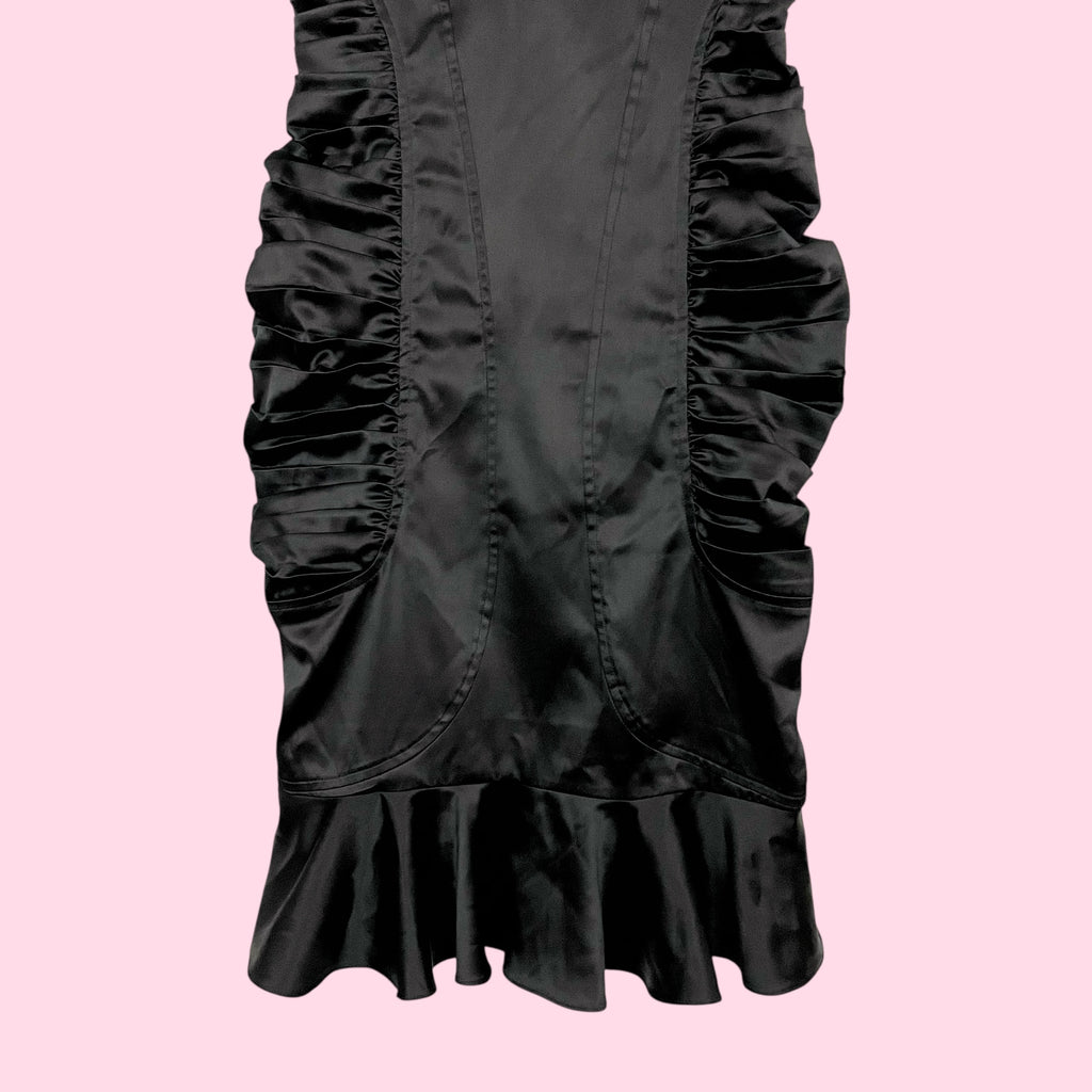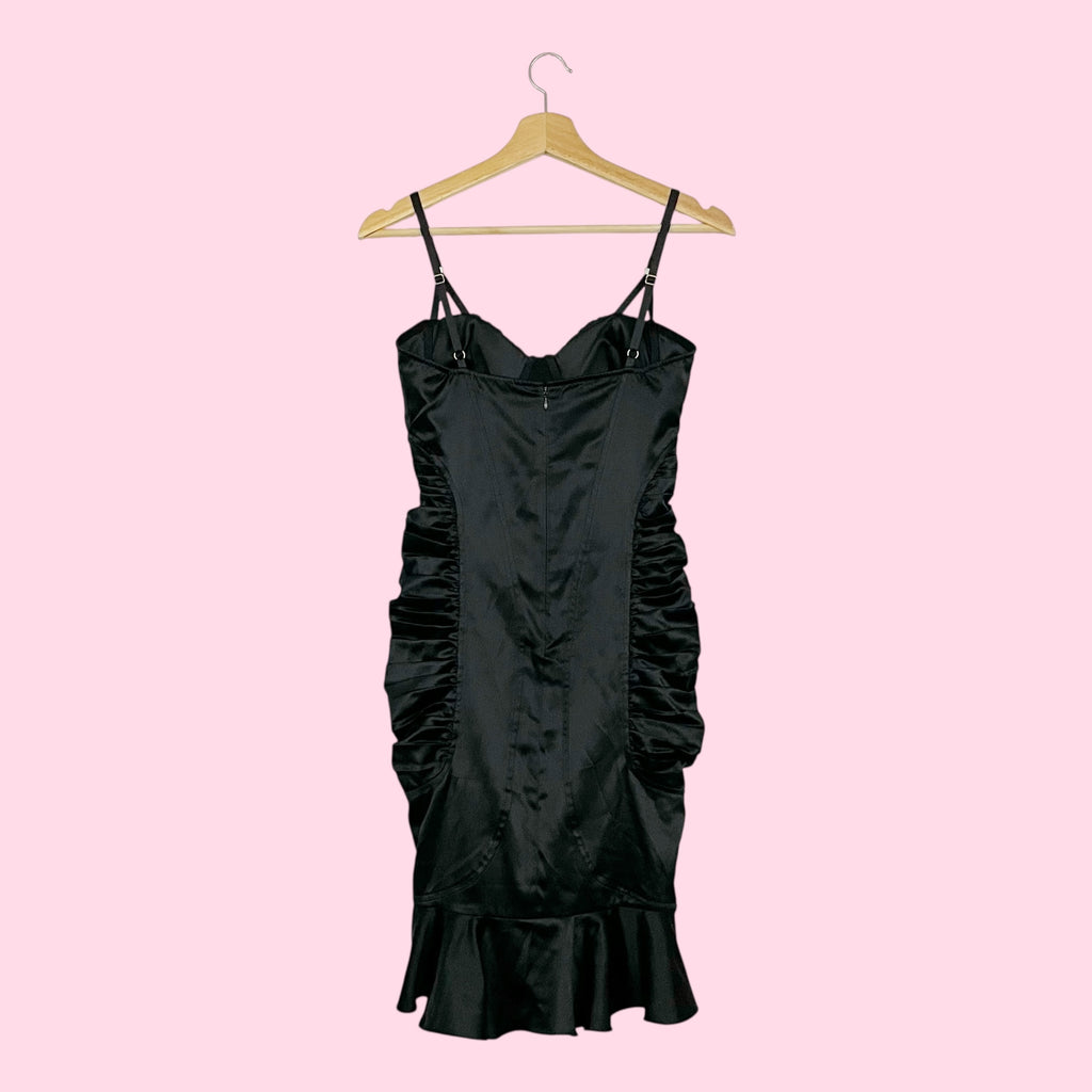 MARCIANO BLACK RUCHED MIDI DRESS (XS)