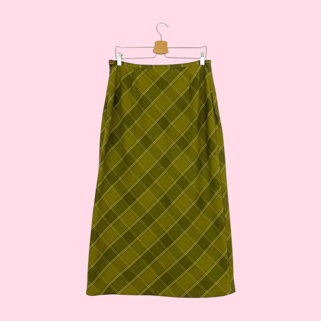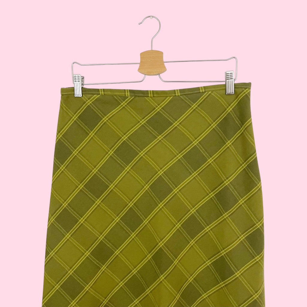 OLIVE GREEN PLAID MAXI SKIRT (L)