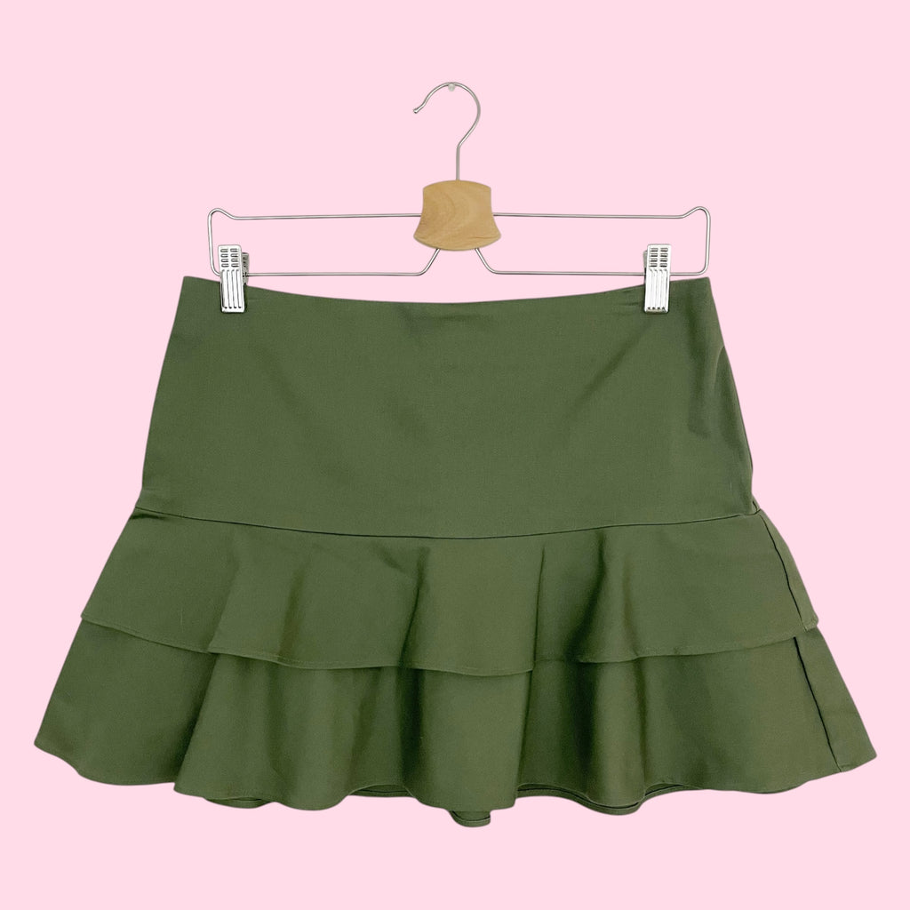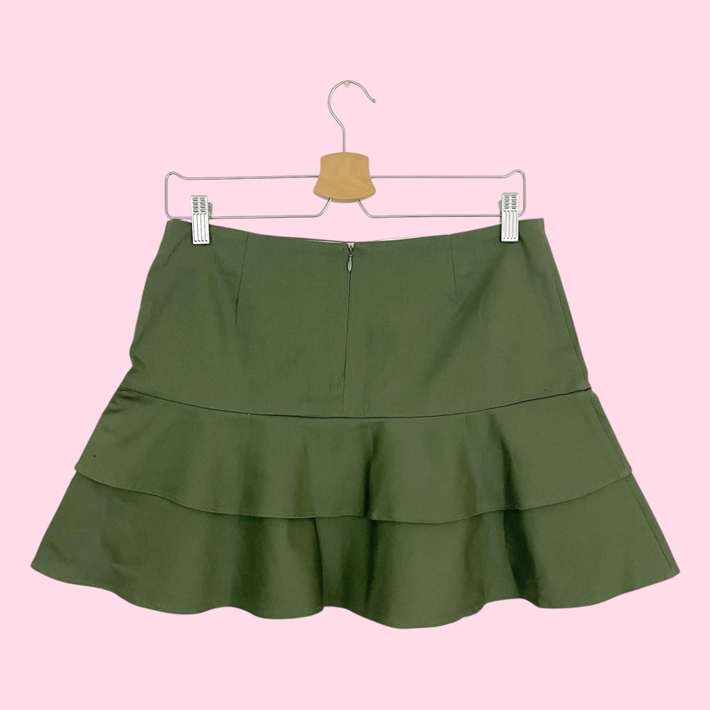 OLIVE GREEN RUFFLE MINI SKIRT (M)