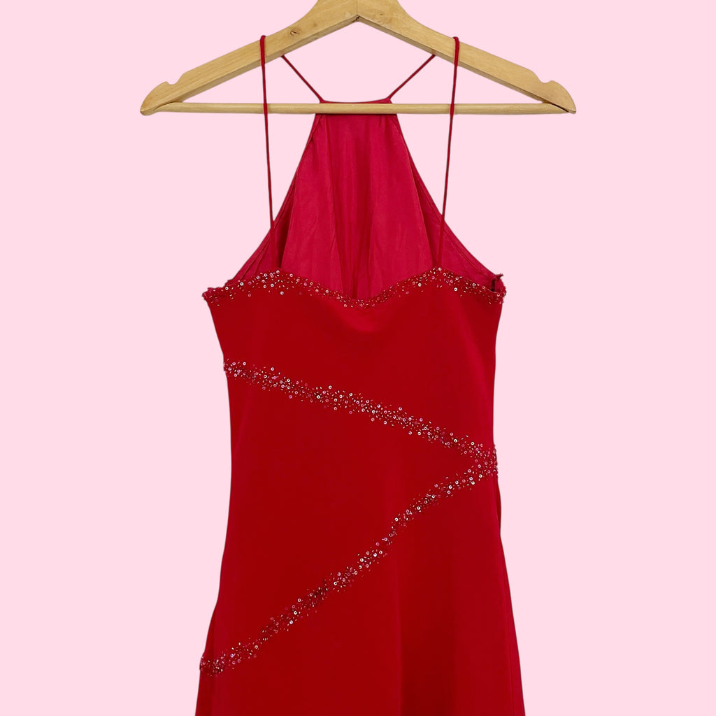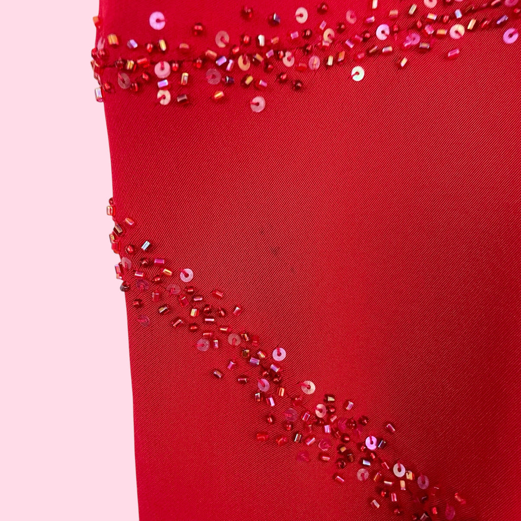 RED BEADED ASYMMETRICAL MIDI DRESS (2)