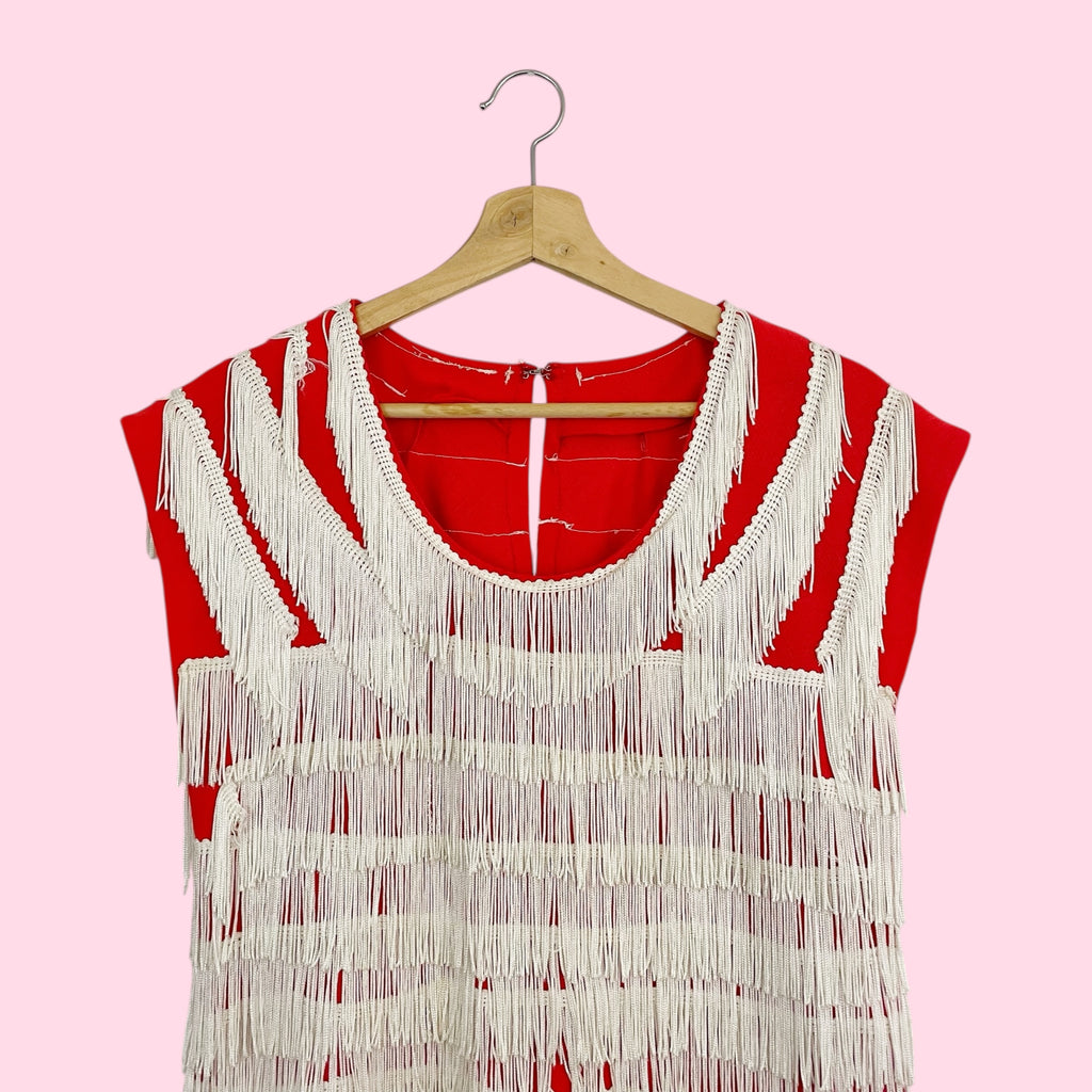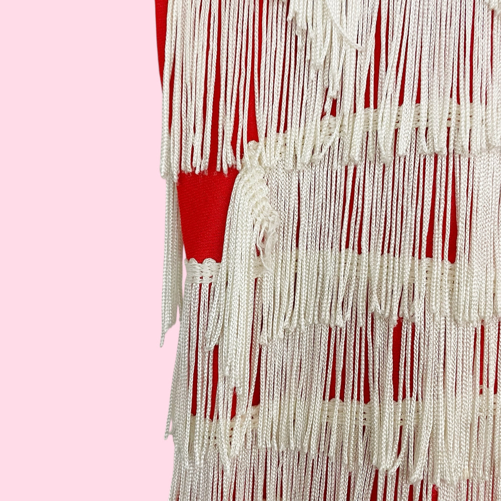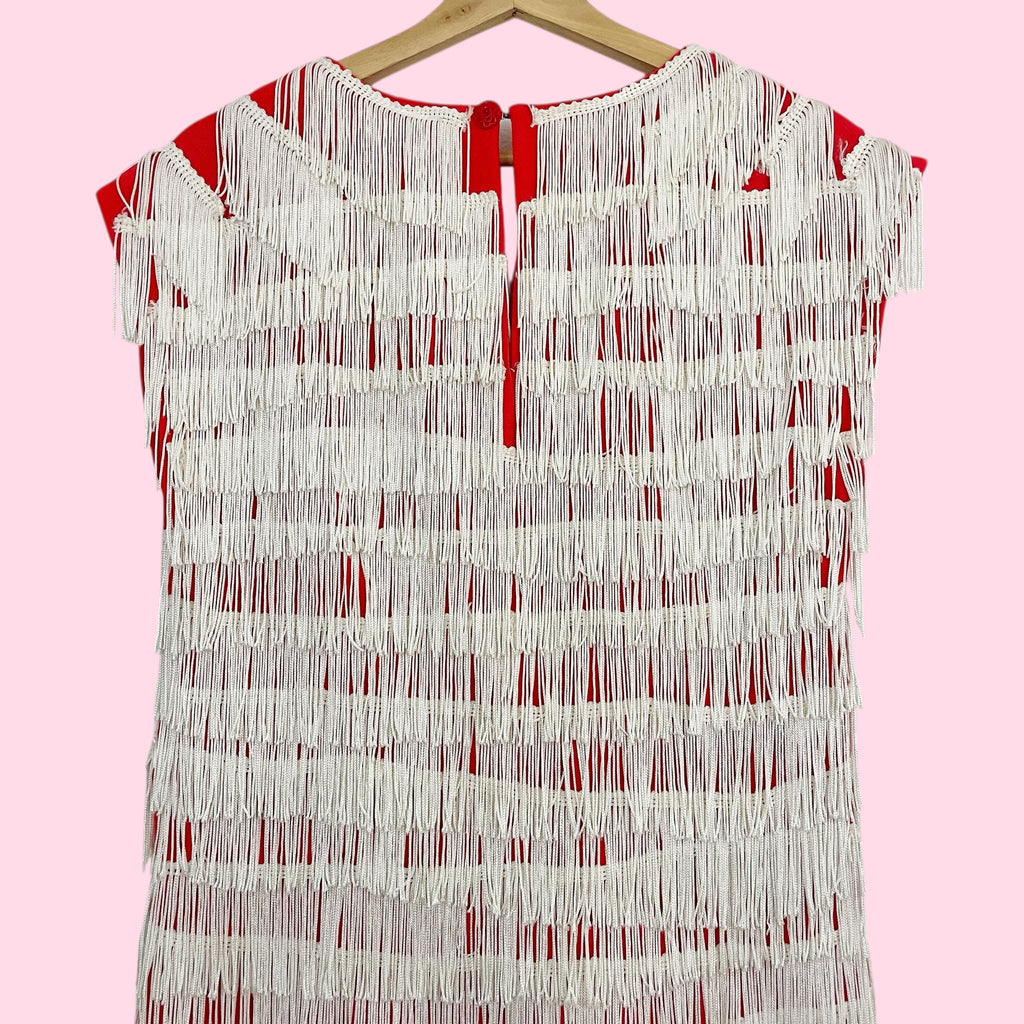 RED + WHITE FRINGE FLAPPER DRESS (S/M)