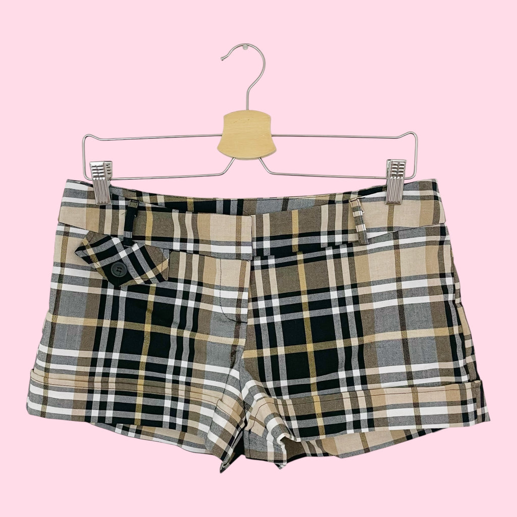 TAN METALLIC PLAID LOW RISE SHORTS (M)