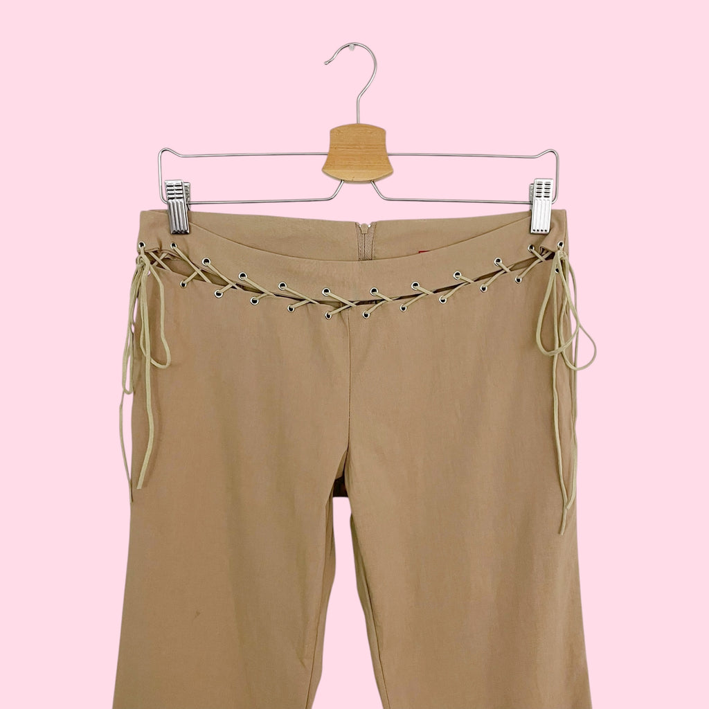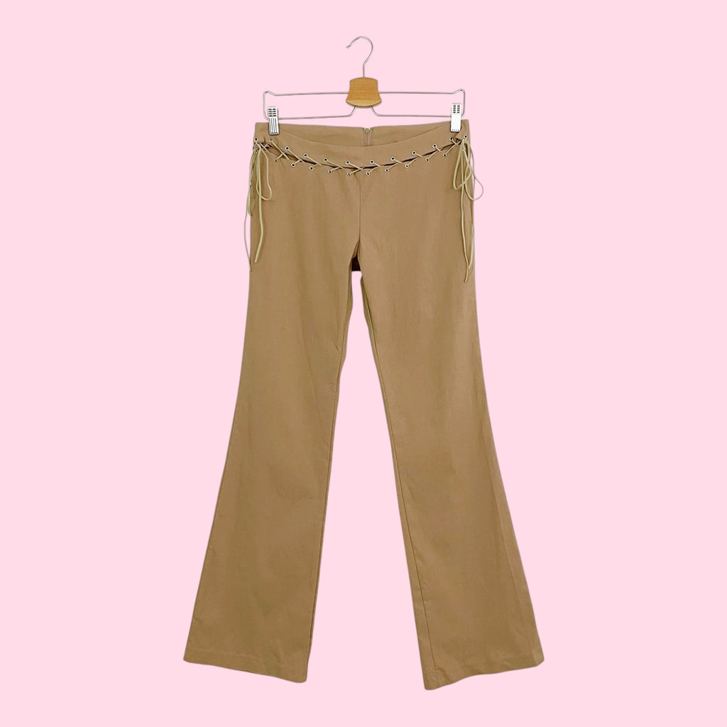 TAN STRETCH BOOTCUT PANTS W/ SUEDE LACE (M)