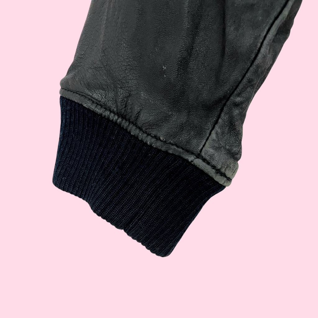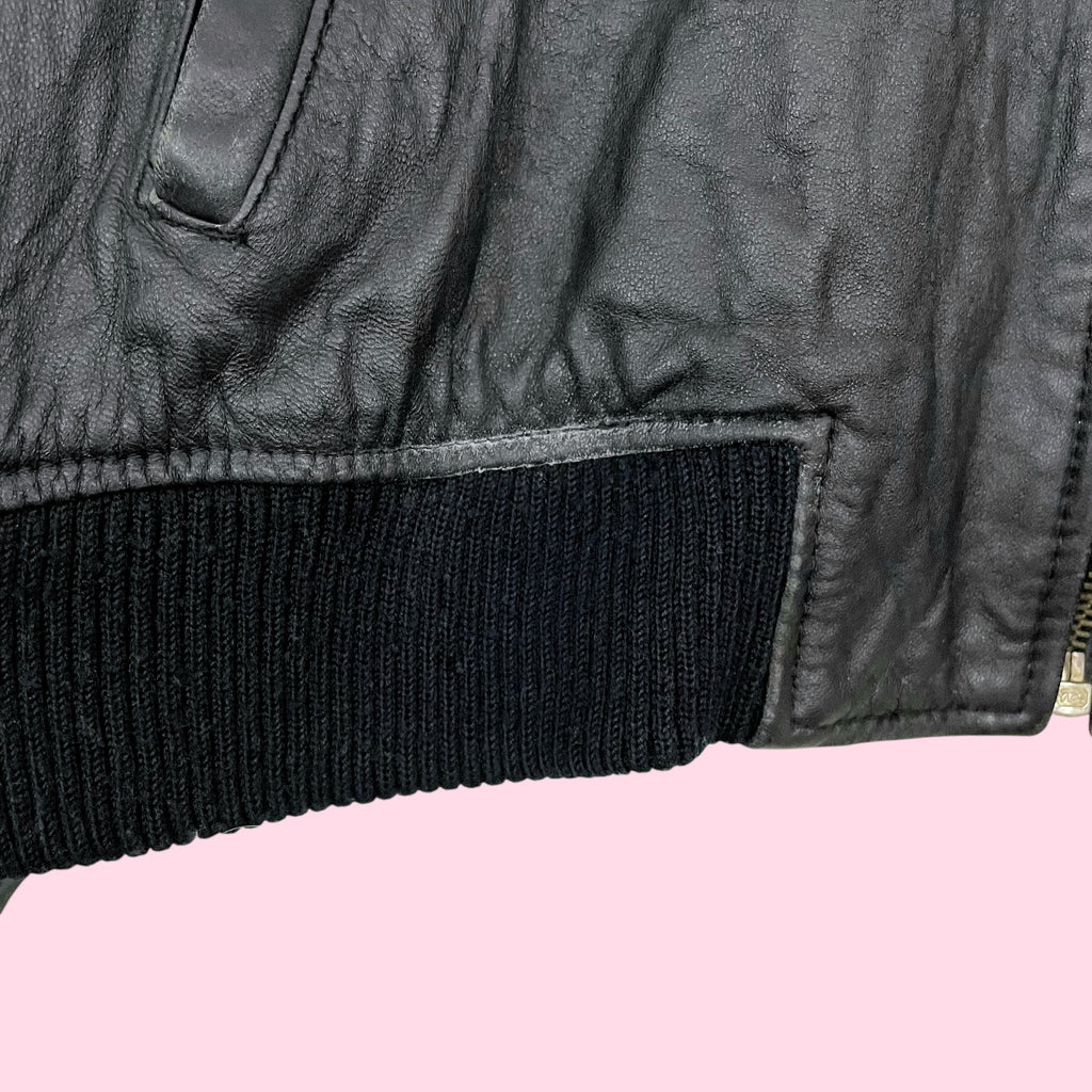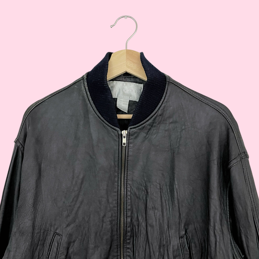 THE LIMITED BLACK LEATHER BOMBER JACKET (L)