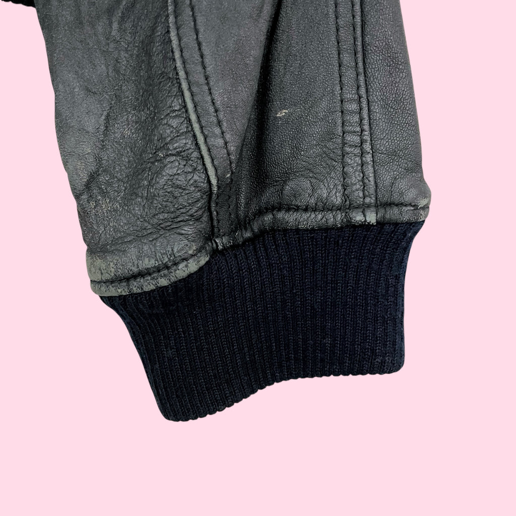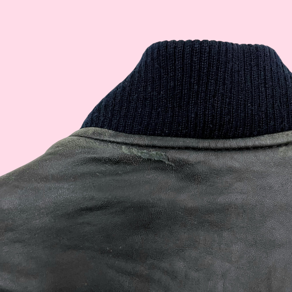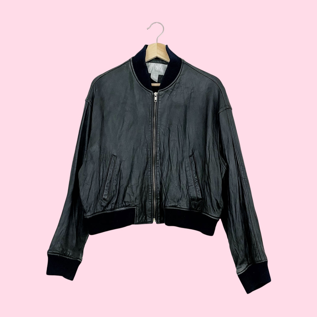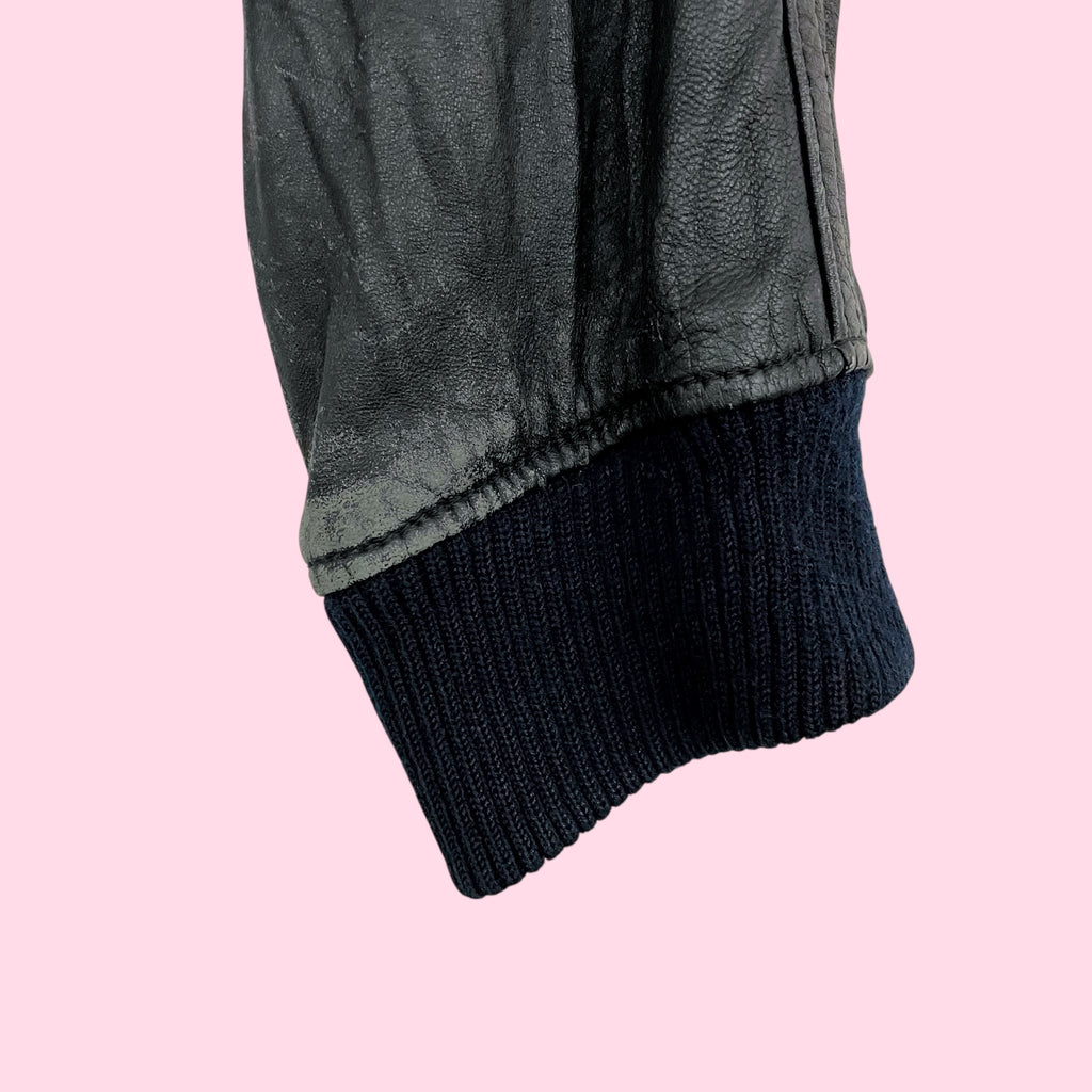 THE LIMITED BLACK LEATHER BOMBER JACKET (L)