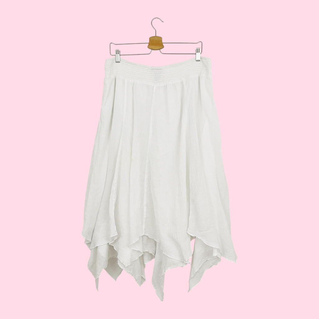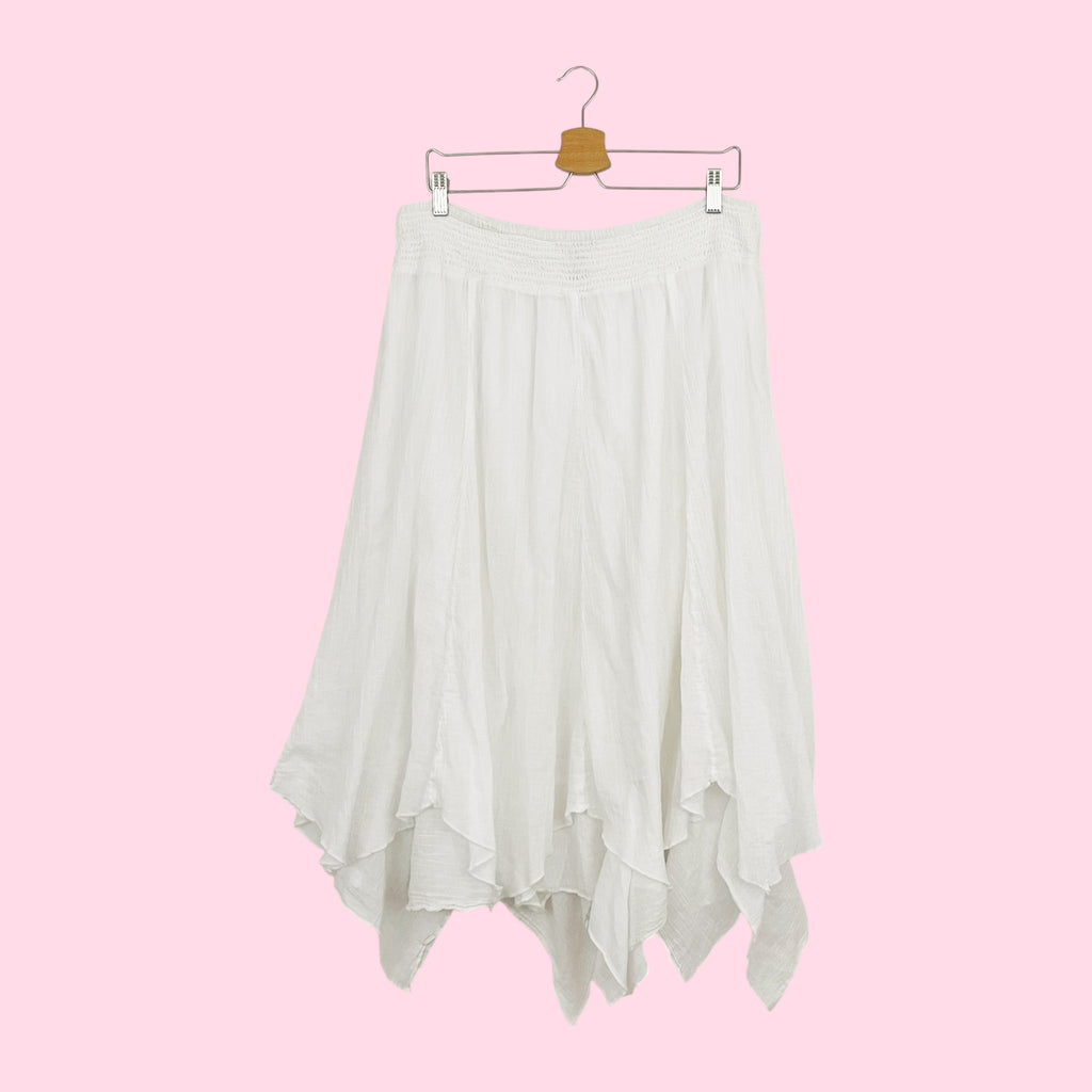 WHITE COTTON ASYMMETRICAL MIDI SKIRT (XL)