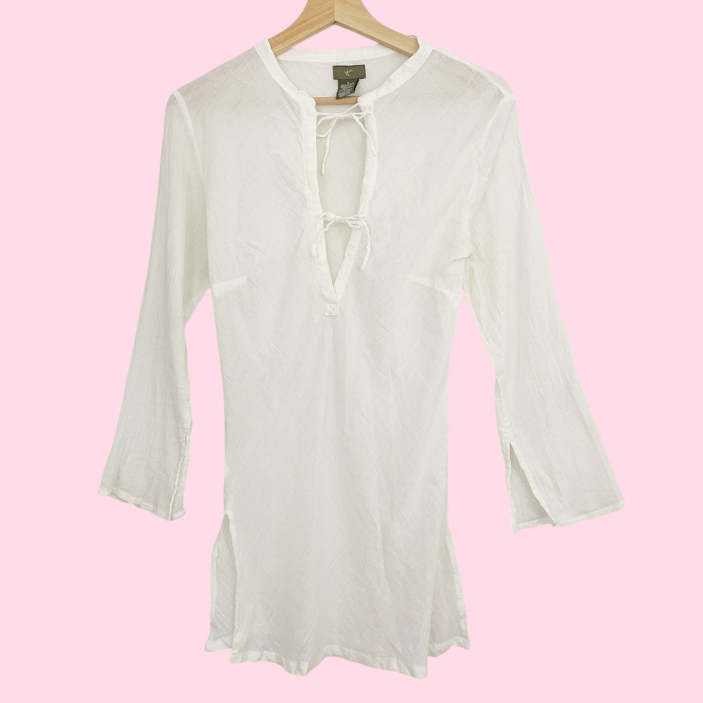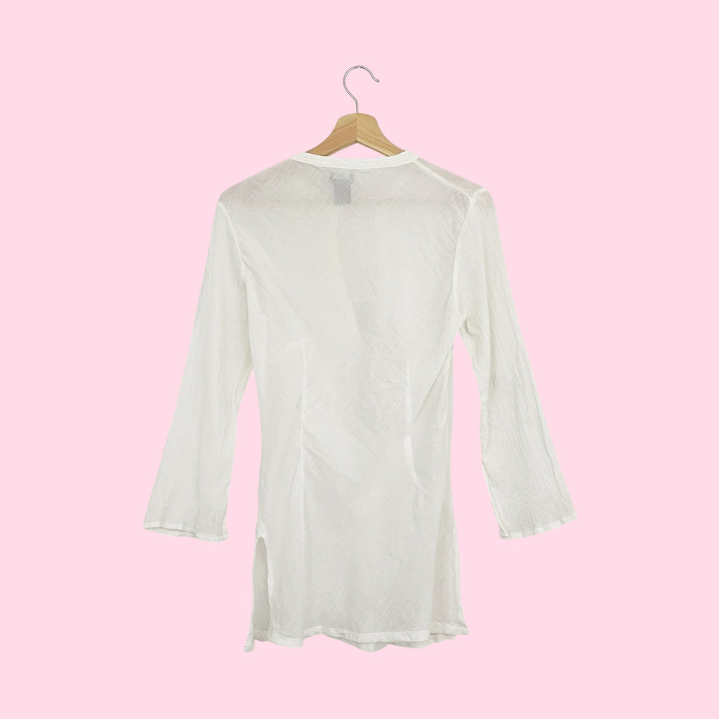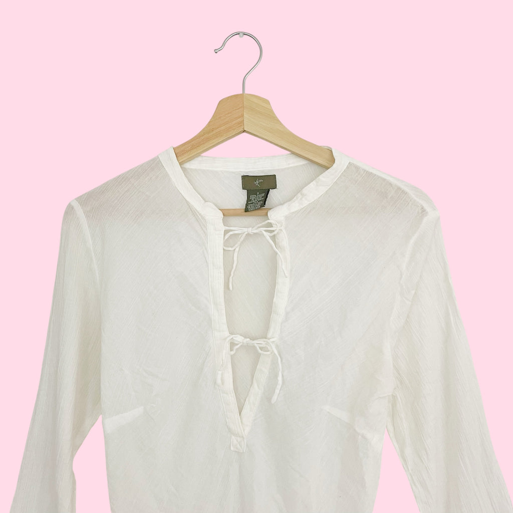 White Sheer Cotton Tie Front Blouse (2)