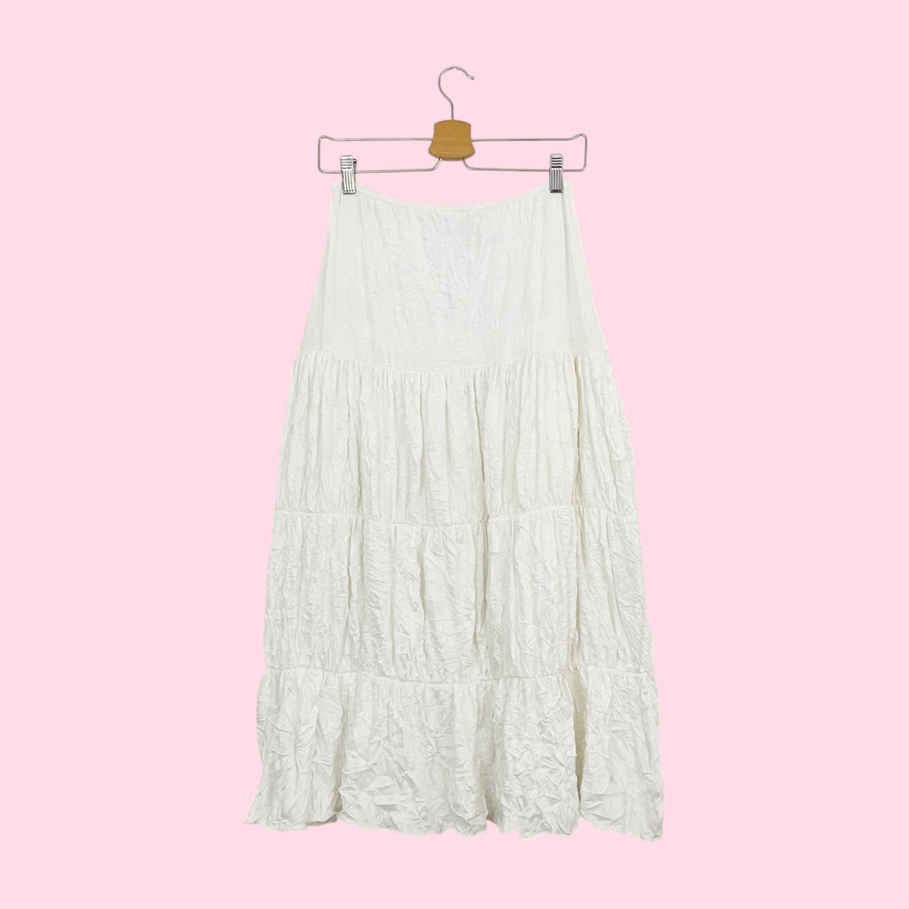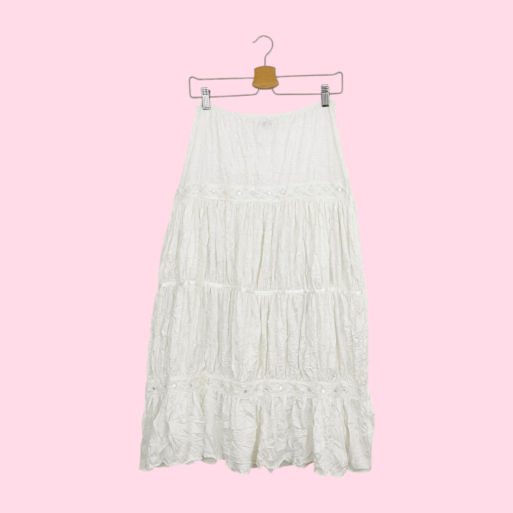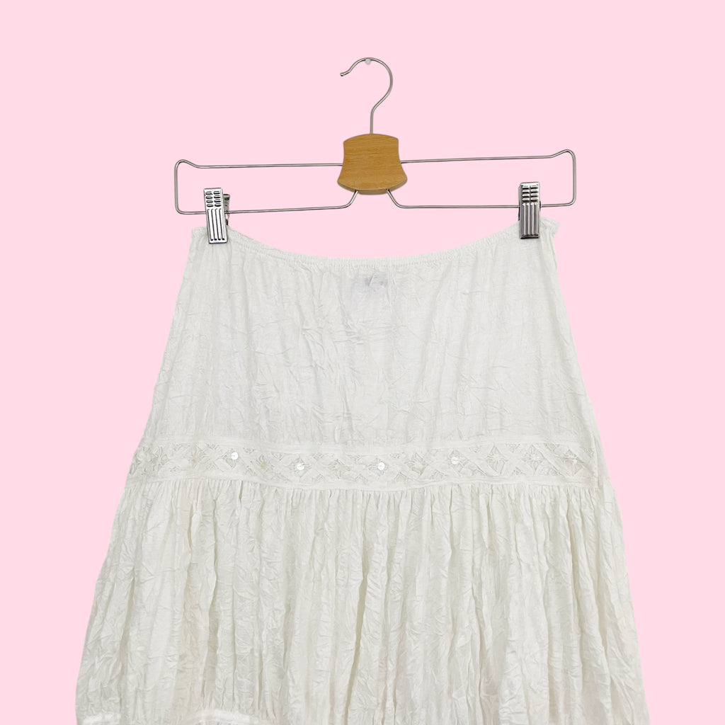 White Tiered Wrinkle Maxi Skirt W/ Sequins (S)