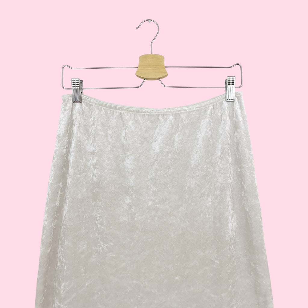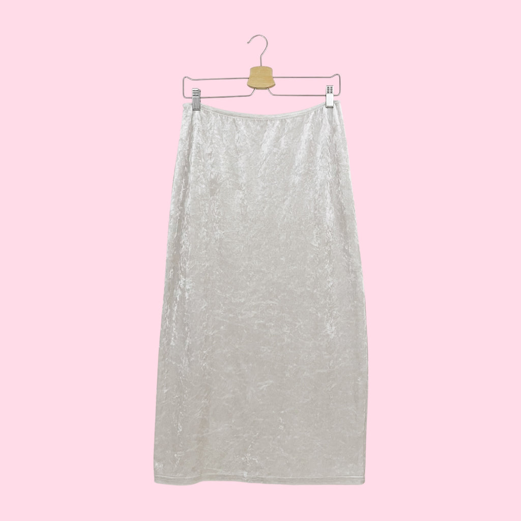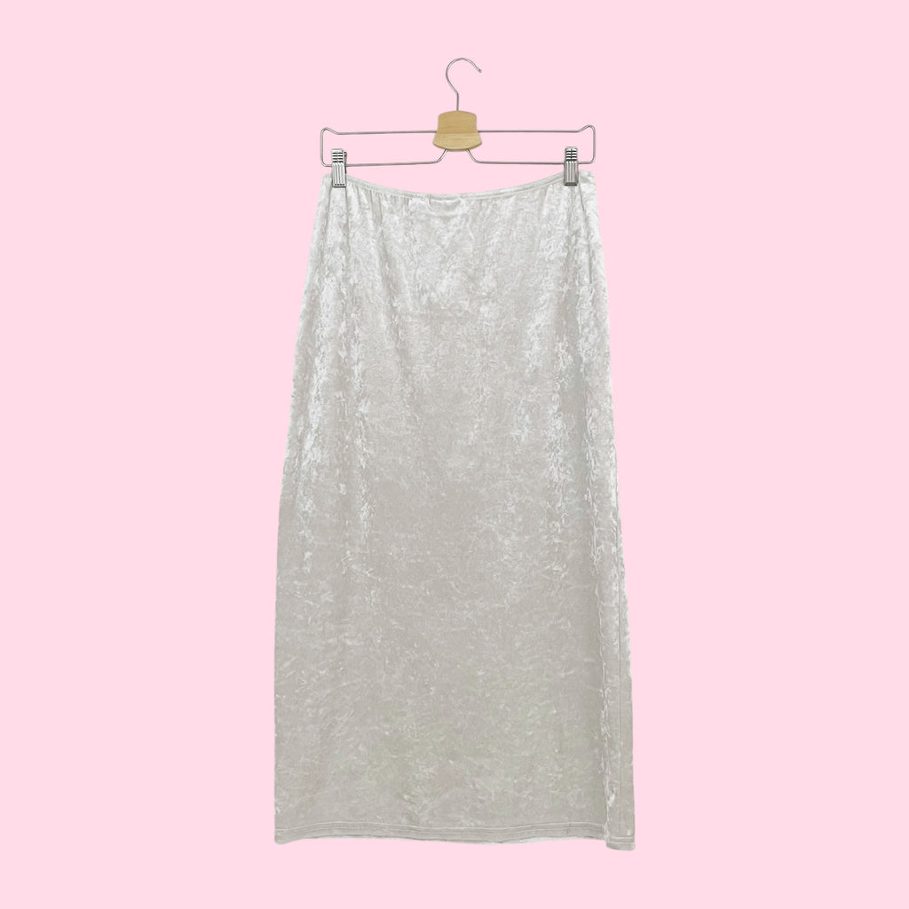 WHITE VELVET MAXI SKIRT (M)